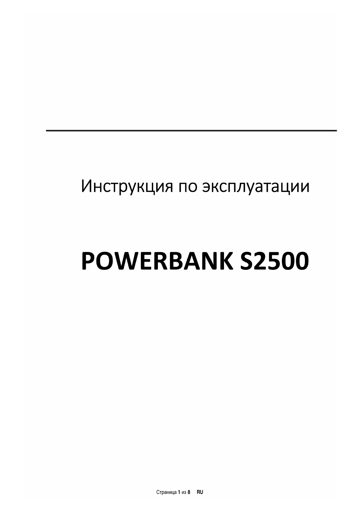 POWERBANK S2500 Страница 1 из 8 RUО данном руководстве