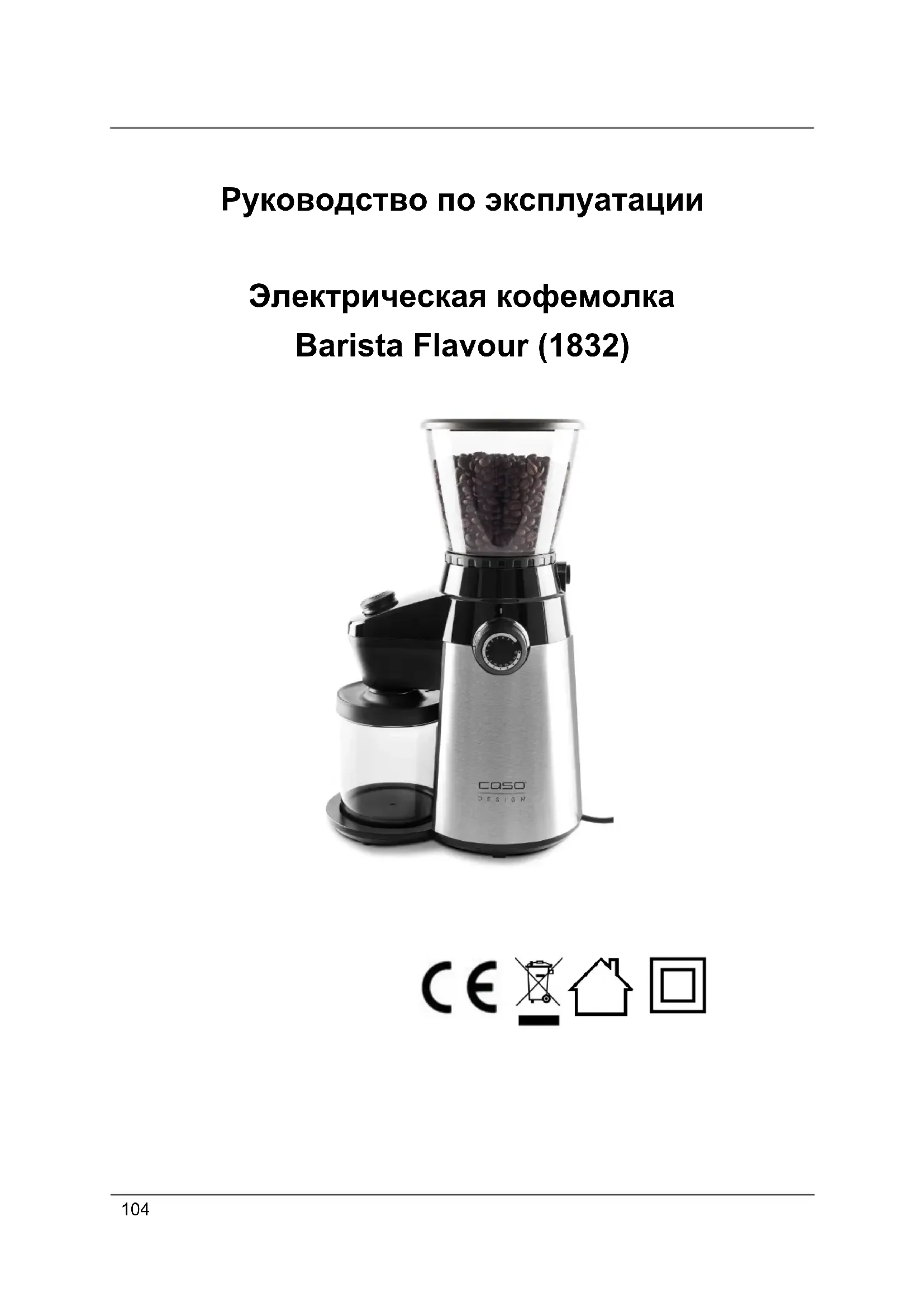 Руководство по эксплуатации Электрическая кофемолка Barista Flavour (1832)105 61 Руководство по эксплуатации