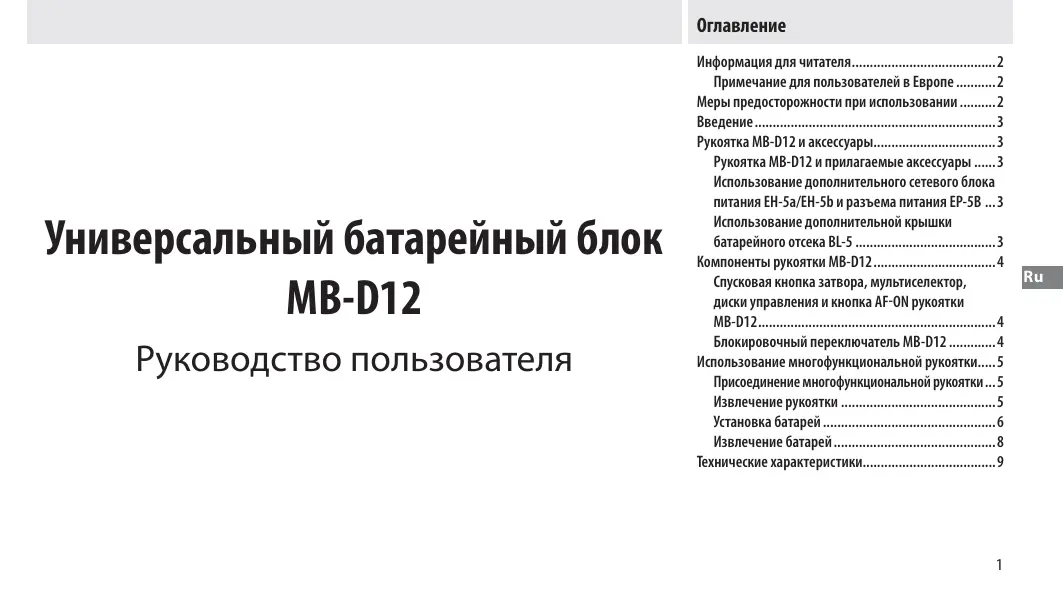 MB-12 - Аксессуары для фотоаппарата NIKON - Бесплатное руководство пользователя