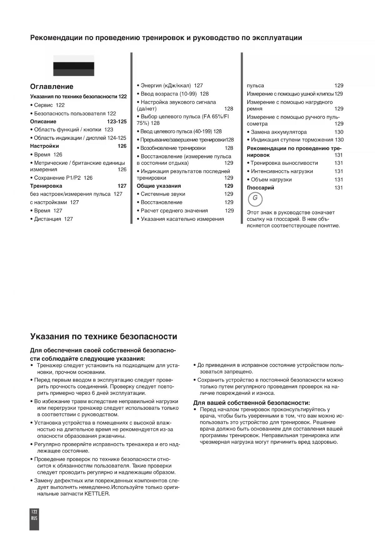 - Индикация результатов последней тренировки 129 Общие указания 129