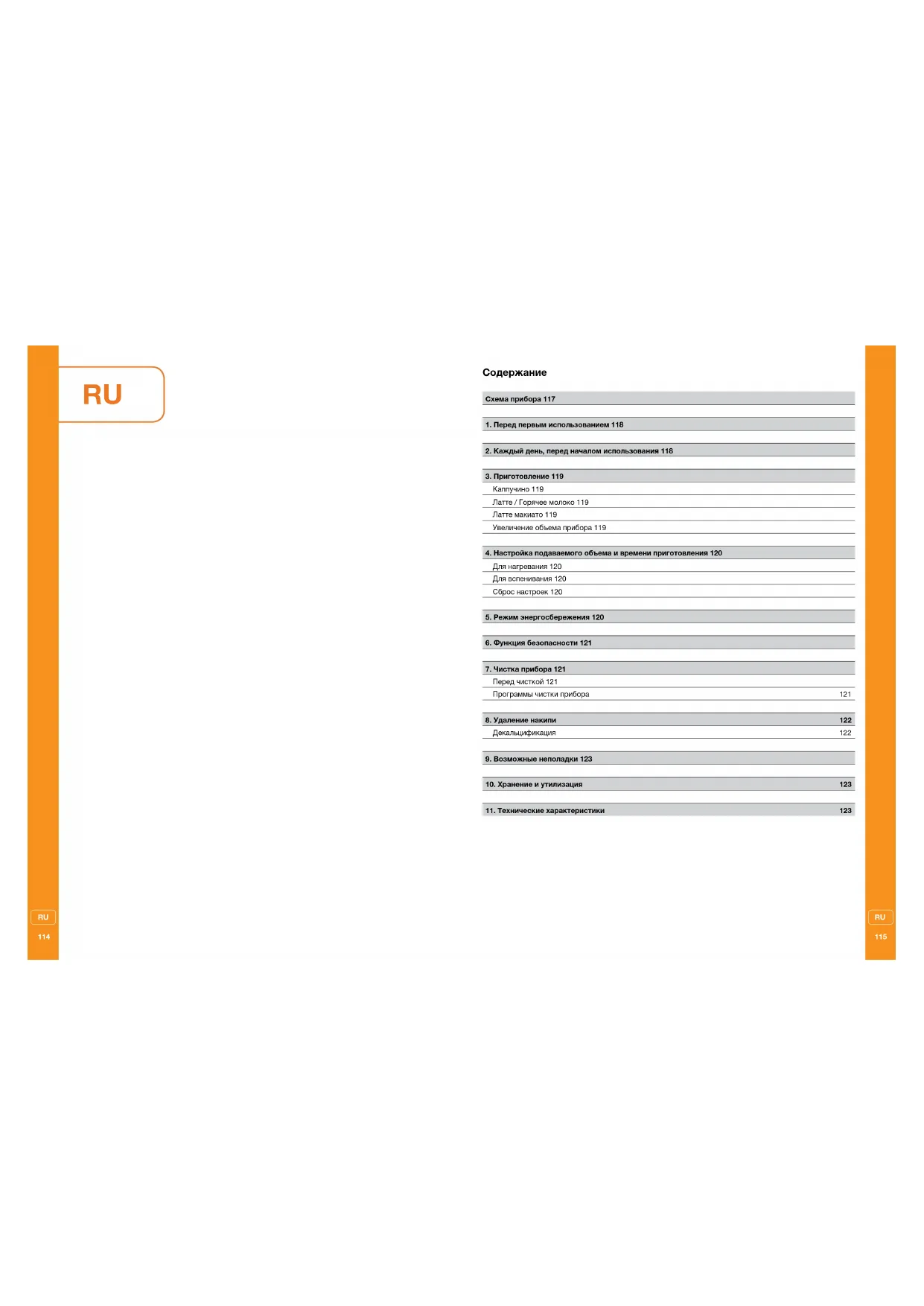 Каппучино 119 Латте / Горячее молоко 119 Латте макиато 119 Увеличение объема прибора 119