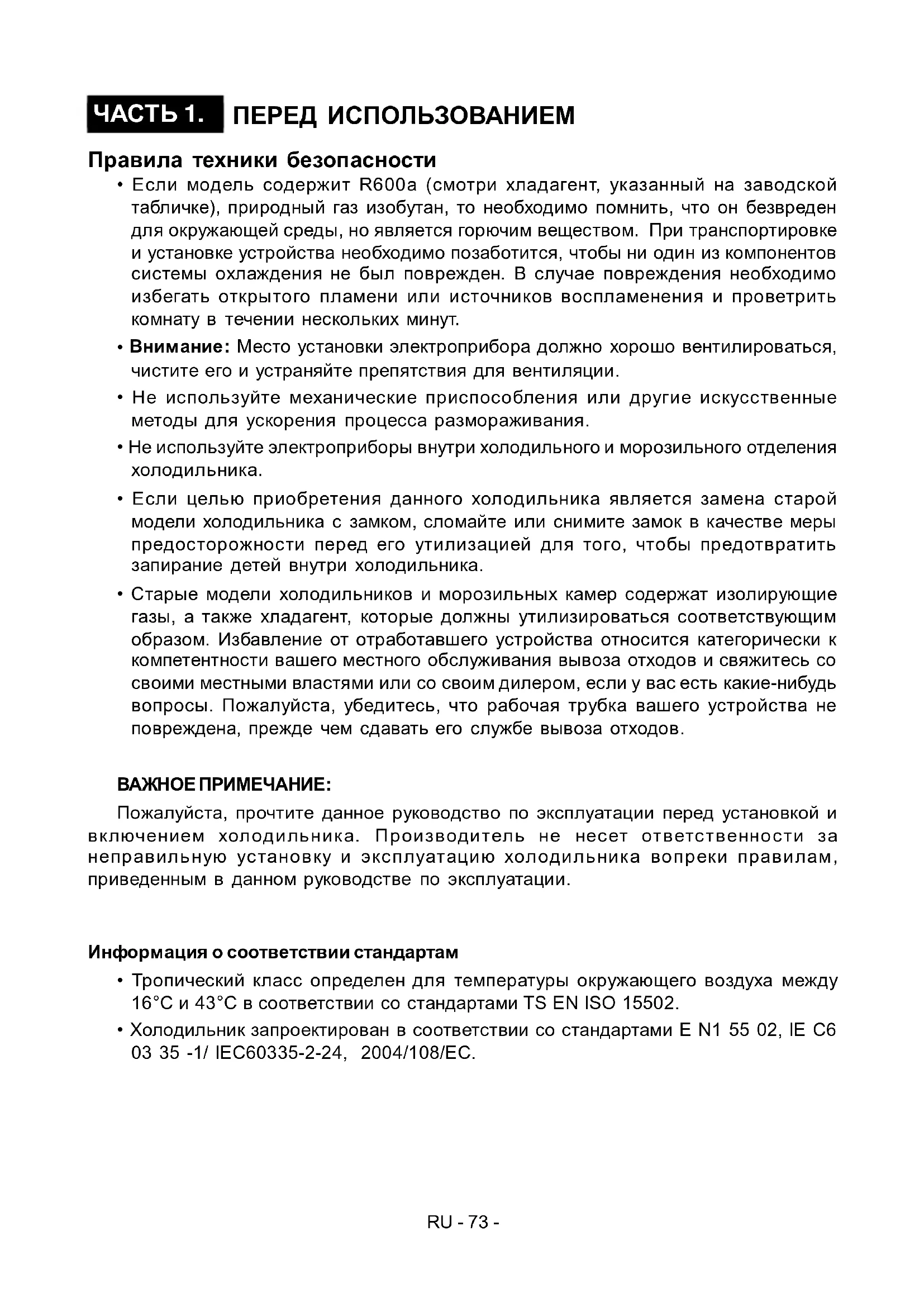 - Холодильник запроектирован в соответствии со стандартами E N1 55 02, IE C6 03 35 -1/ IEC60335-2-24, 2004/108/EC. Правила техники безопасности