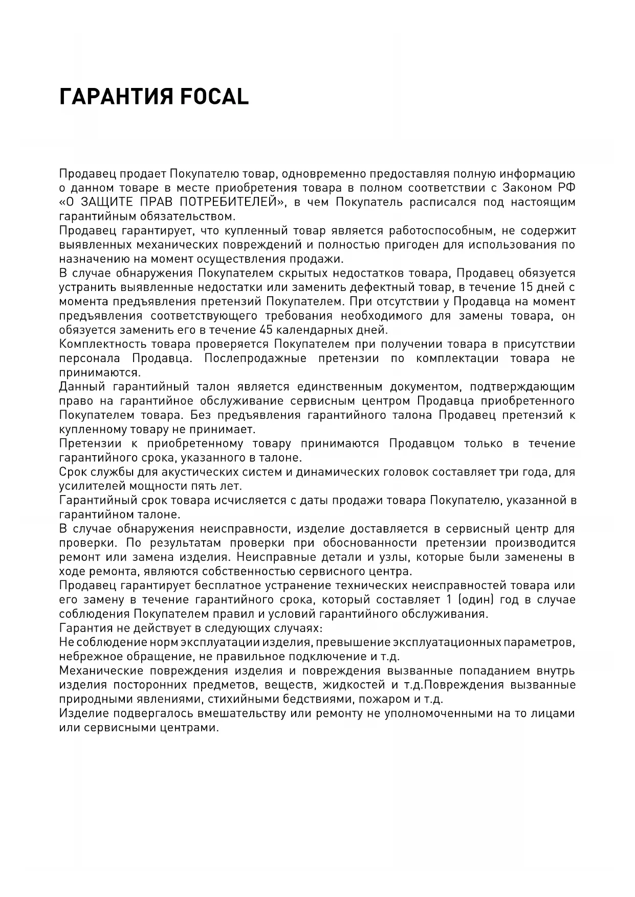 РУКОВОДСТВО ПОЛЬЗОВАТЕЛЯ Performance Expert PS 130F FOCAL