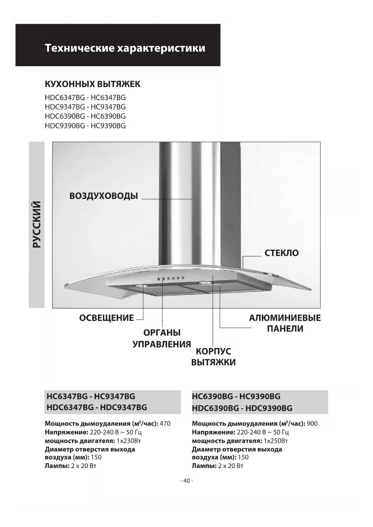Мощность дымоудаления (м /час): 470Напряжение: 220-240 В ~ 50 Гцмощность двигателя: 1x230ВтДиаметр отверстия выхода воздуха (мм): 150Лампы: 2 х 20 ВтМощность дымоудаления (м /час): 900Напряжение: 220-240 В ~ 50 Гцмощность двигателя: 1x250ВтДиаметр отверстия выхода воздуха (мм): 150Лампы: 2 х 20 Вт- 41 -