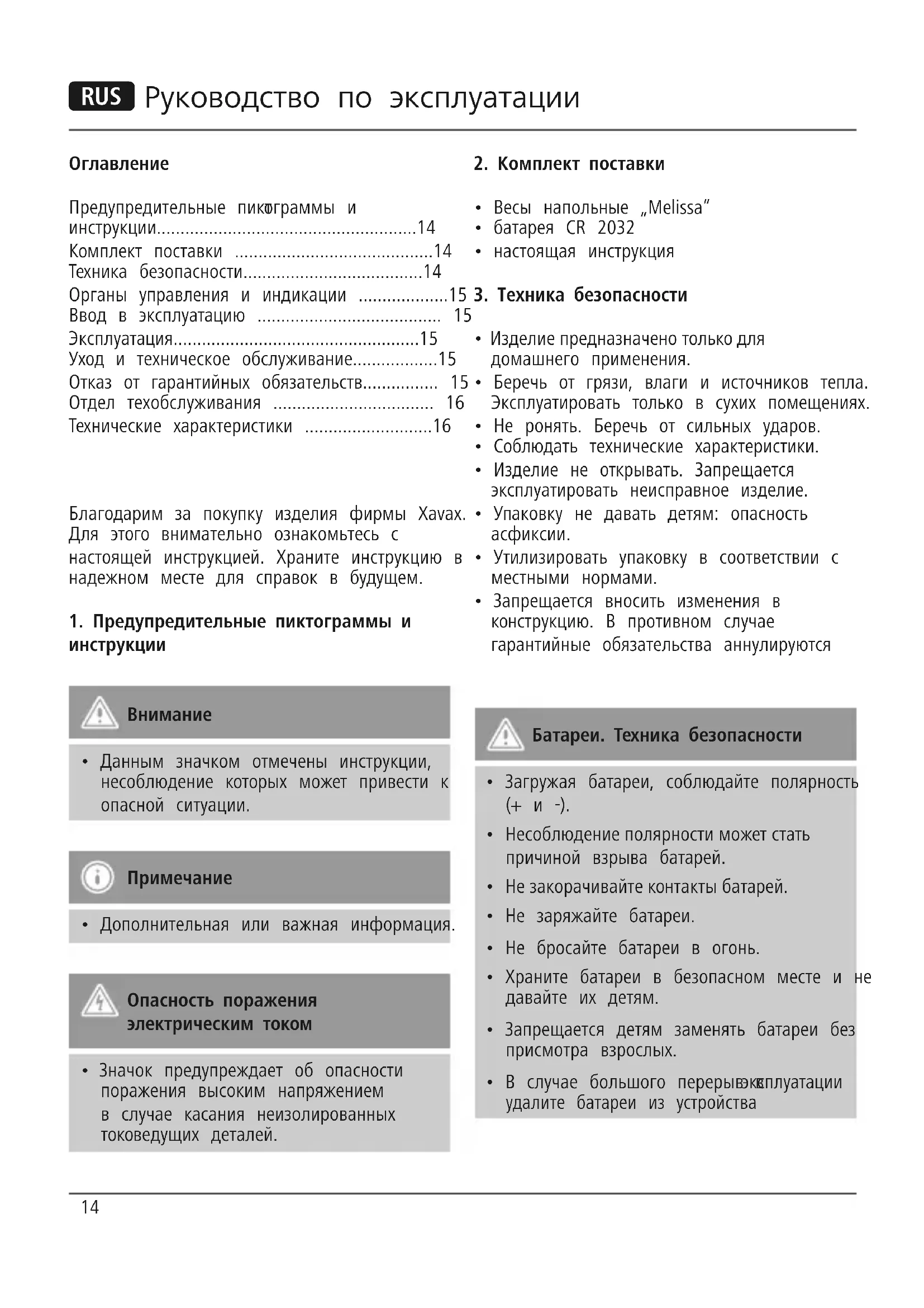 - Технические характеристики Благодарим за покупку изделия фирмы Xavax. Для этого внимательно ознакомьтесь с настоящей инструкцией. Храните инструкцию в надежном месте для справок в будущем. p. 16