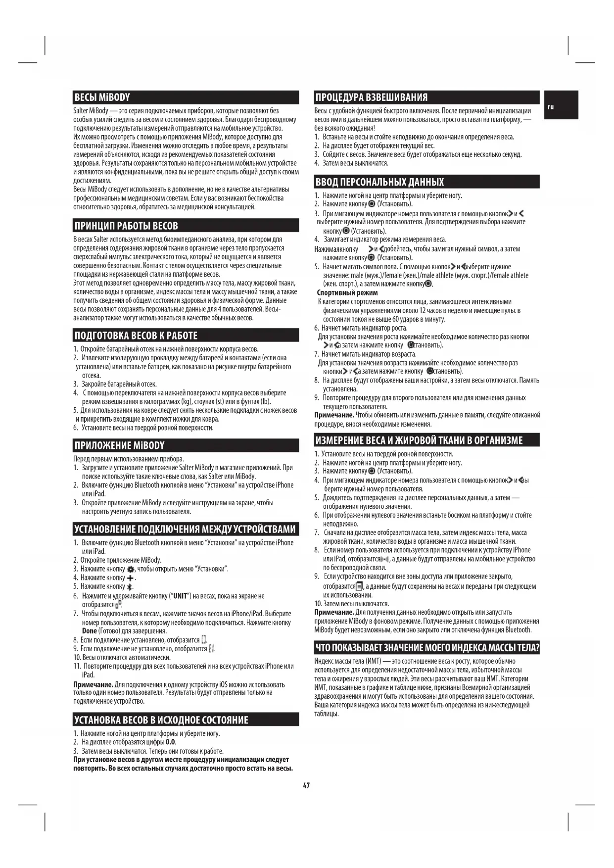 РУКОВОДСТВО ПОЛЬЗОВАТЕЛЯ 9154 BK3R MiBody SALTER