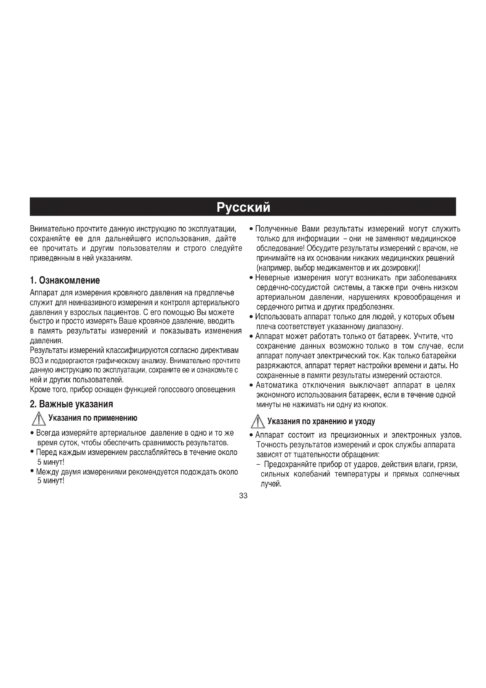 Результаты измерений классифицируются согласно директивам ВОЗ и подвергаются графическому анализу. Внимательно прочтите данную инструкцию по эксплуатации, сохраните ее и ознакомьте с ней и других пользователей. Кроме того, прибор оснащен функцией голосового оповещения