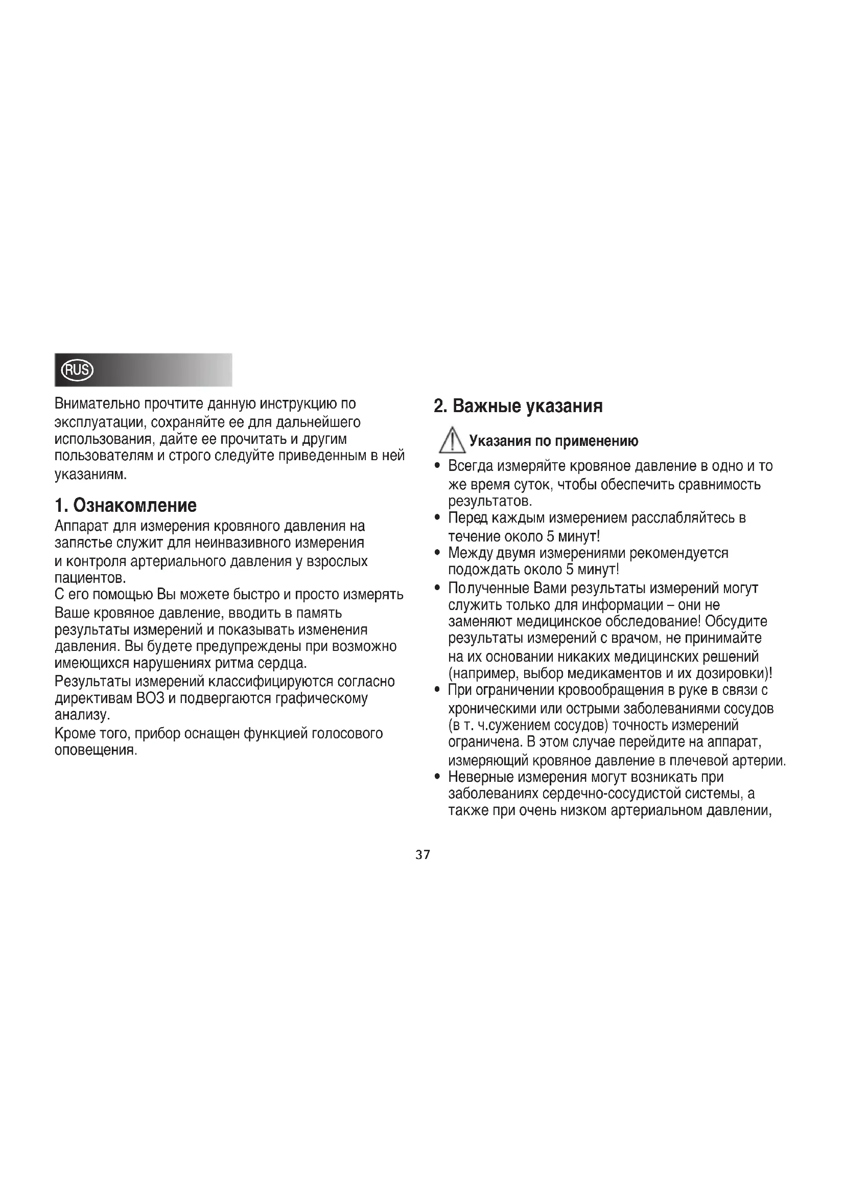 лученные Вами результаты измерений могут служить только для информации – они не заменяют медицинское обследование! Обсудите результаты измерений с врачом, не принимайте на их основании никаких медицинских решений (например, выбор медикаментов и их дозировки)!