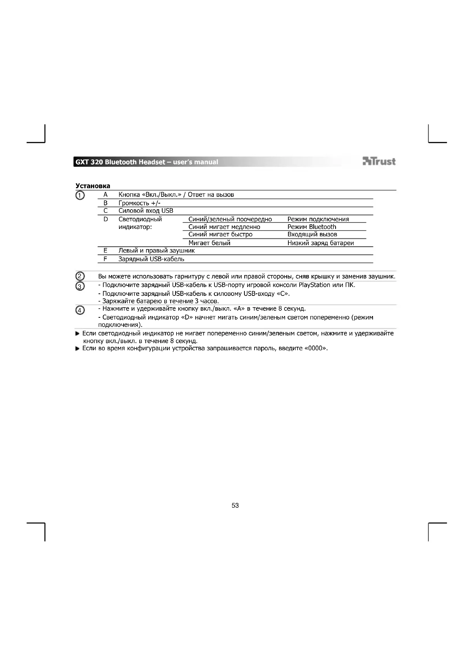 Если возникшую проблему не удалось решить, обратитесь в службу технической поддержки www.trust.com/19670/faqGXT 320 Bluetooth Headset – user’s manual