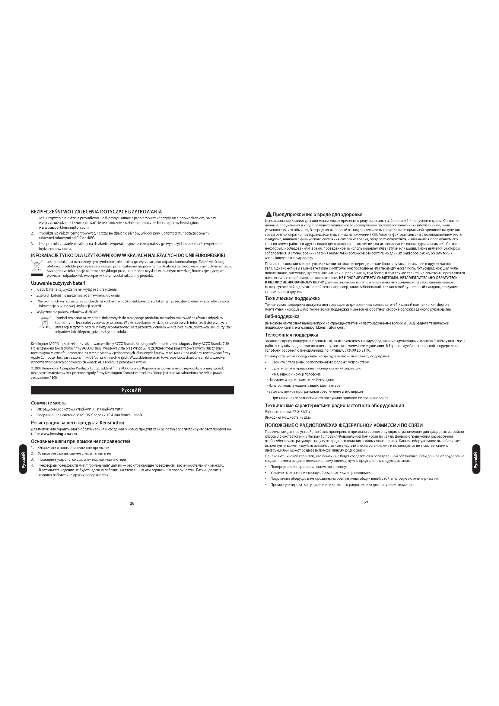 © 2008 Kensington Computer Products Group, подразделение компании ACCO Brands. Запрещается несанкционированное копирование, дублирование или размножение иным способом содержимого настоящего документа без письменного согласия компании Kensington Computer Products Group. Все права защищены! № 8