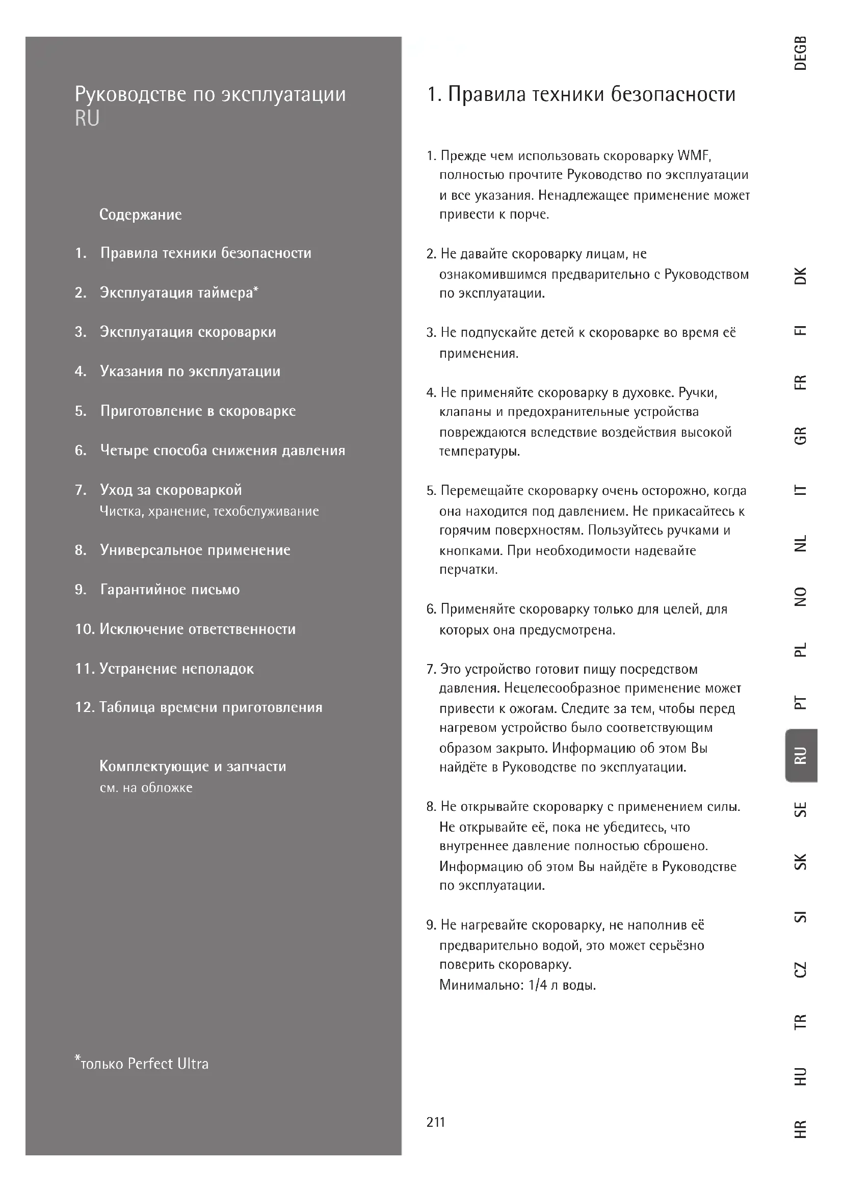 РУКОВОДСТВО ПОЛЬЗОВАТЕЛЯ Perfect Ultra WMF