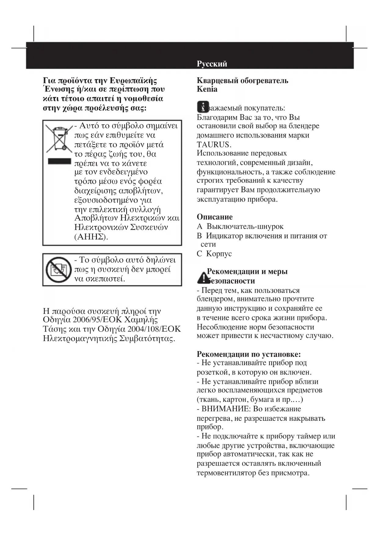 РУКОВОДСТВО ПОЛЬЗОВАТЕЛЯ Kenia TAURUS