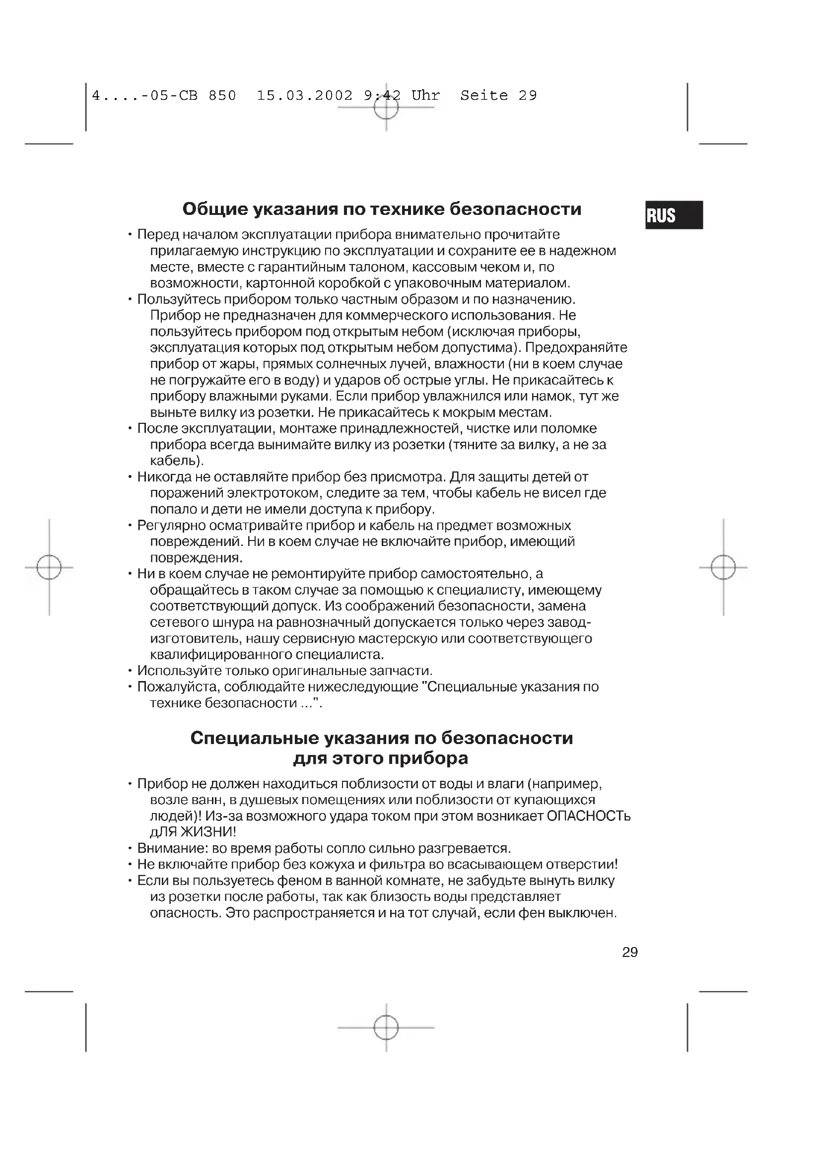 RUS 4....-05-CB 850 15.03.2002 9:42 Uhr Seite 30Этот прибор соответствует директивам СЕ по искрозащите и технике безопасности для низковольтных приборов; он сконструирован в соответствии с новейшими предписаниями по технике безопасности. Мы оставляем за собой право на технические изменения!
