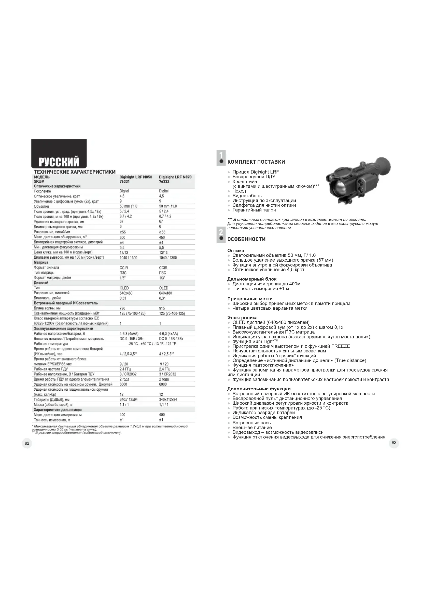 | МОДЕЛЬSKU# | Digisight LRF N85076331 | Digisight LRF N87076332 |