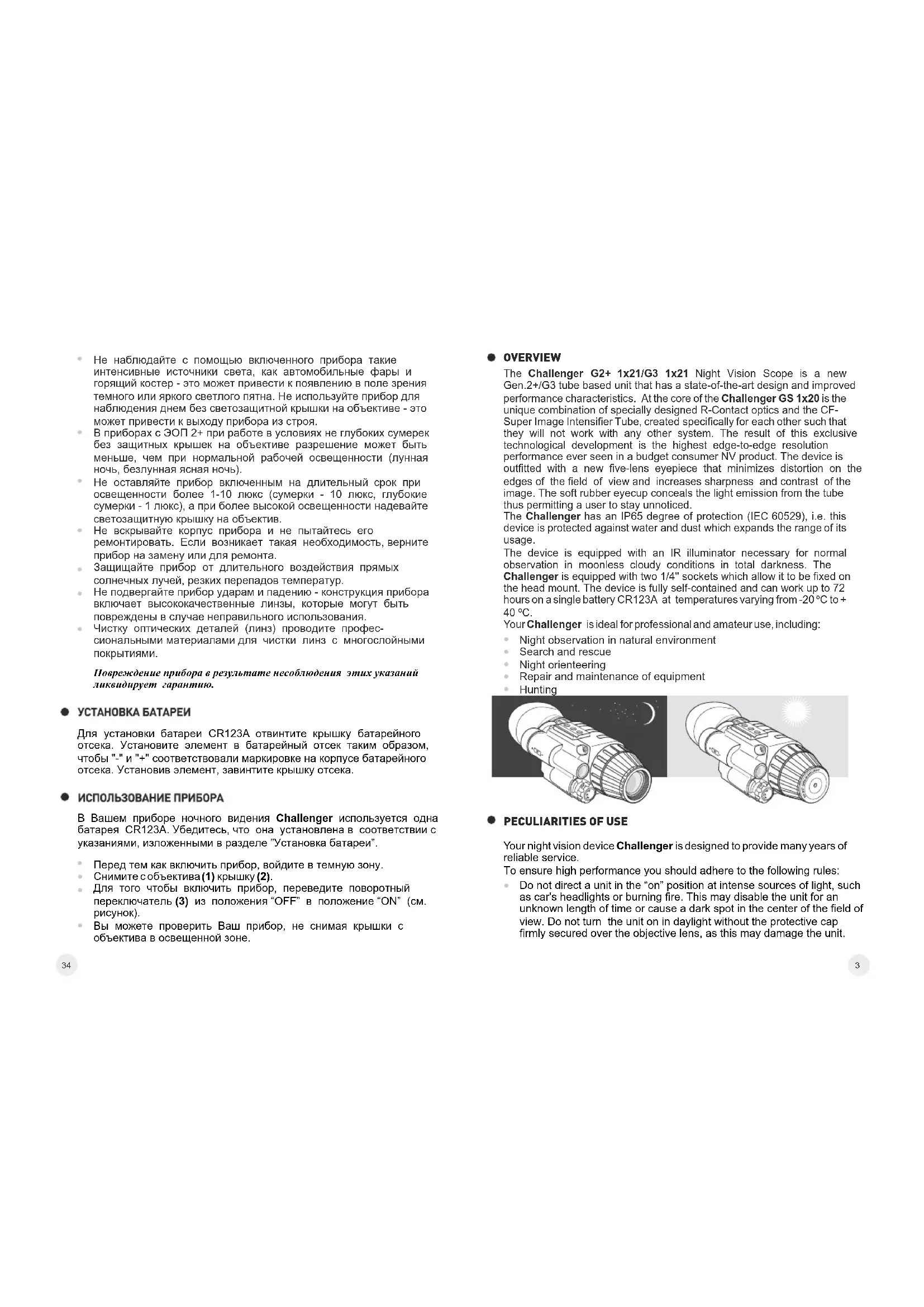 Скачайте инструкцию для вашего бинокли в формате PDF бесплатно! Найдите своё руководство Challenger GS - PULSAR и возьмите своё электронное устройство обратно в руки. На этой странице опубликованы все документы, необходимые для использования вашего устройства. Challenger GS бренда PULSAR.