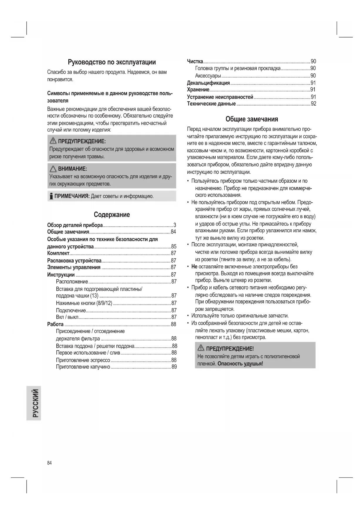 Обзор деталей прибора ...............................................стр. 3 Руководство по эксплуатации......................................стр. 84 Технические данные .....................................................стр. 92