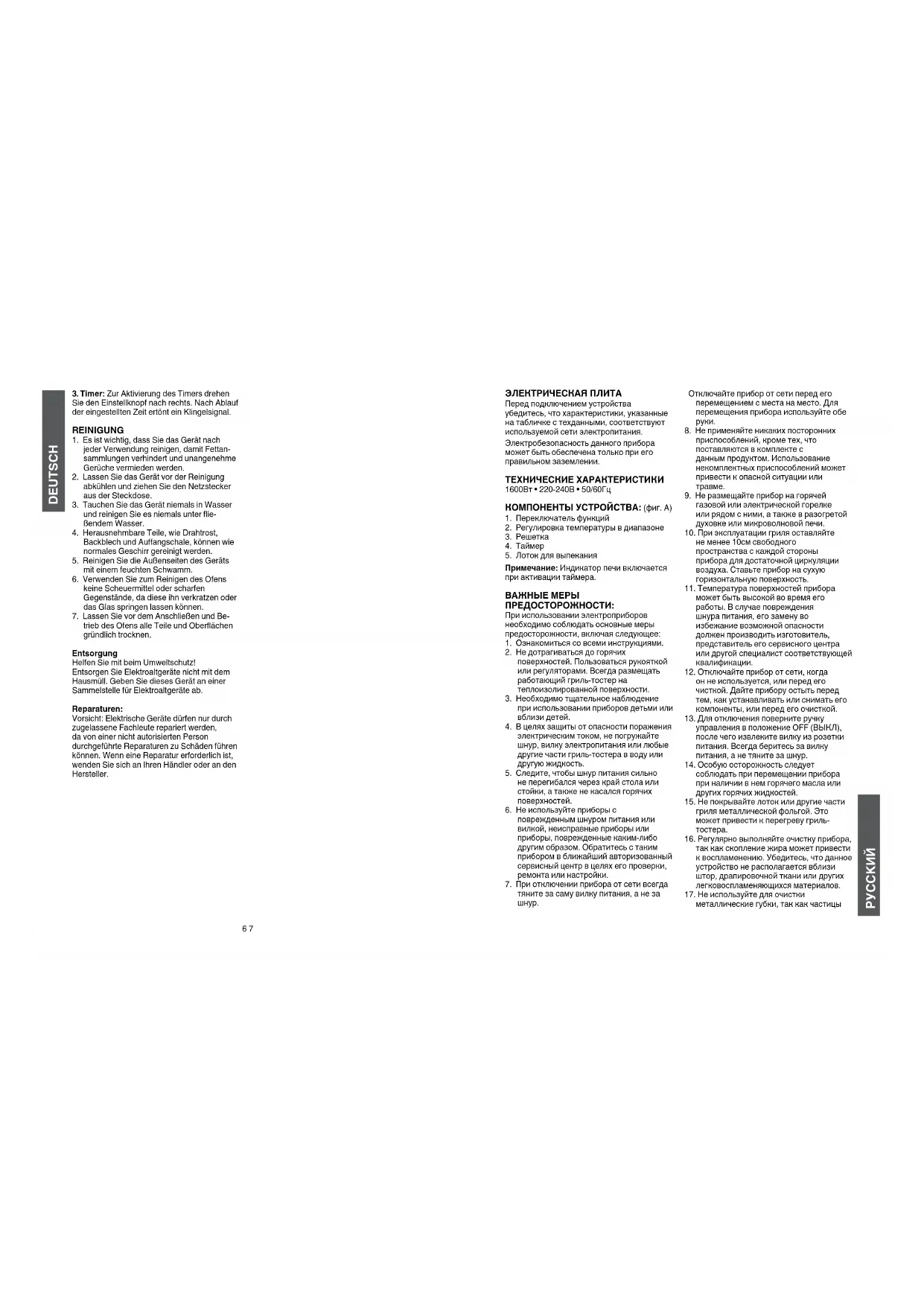 электроприборами данное устройство может работать неправильно. Для гриль- тостера следует использовать цепь электропитания, отдельную от других работающих приборов.