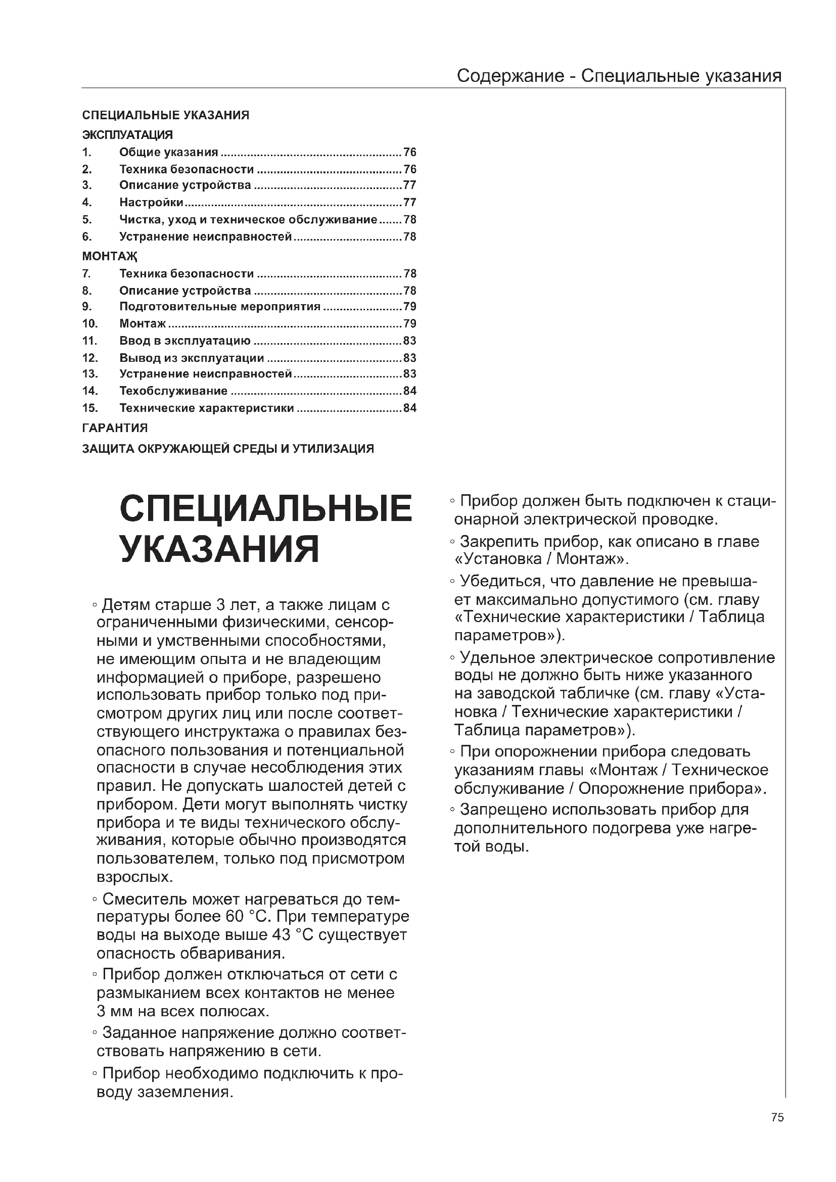 - Запрещено использовать прибор для дополнительного подогрева уже нагре- той воды.76 Эксплуатация ЭКСПЛУАТАЦИЯ