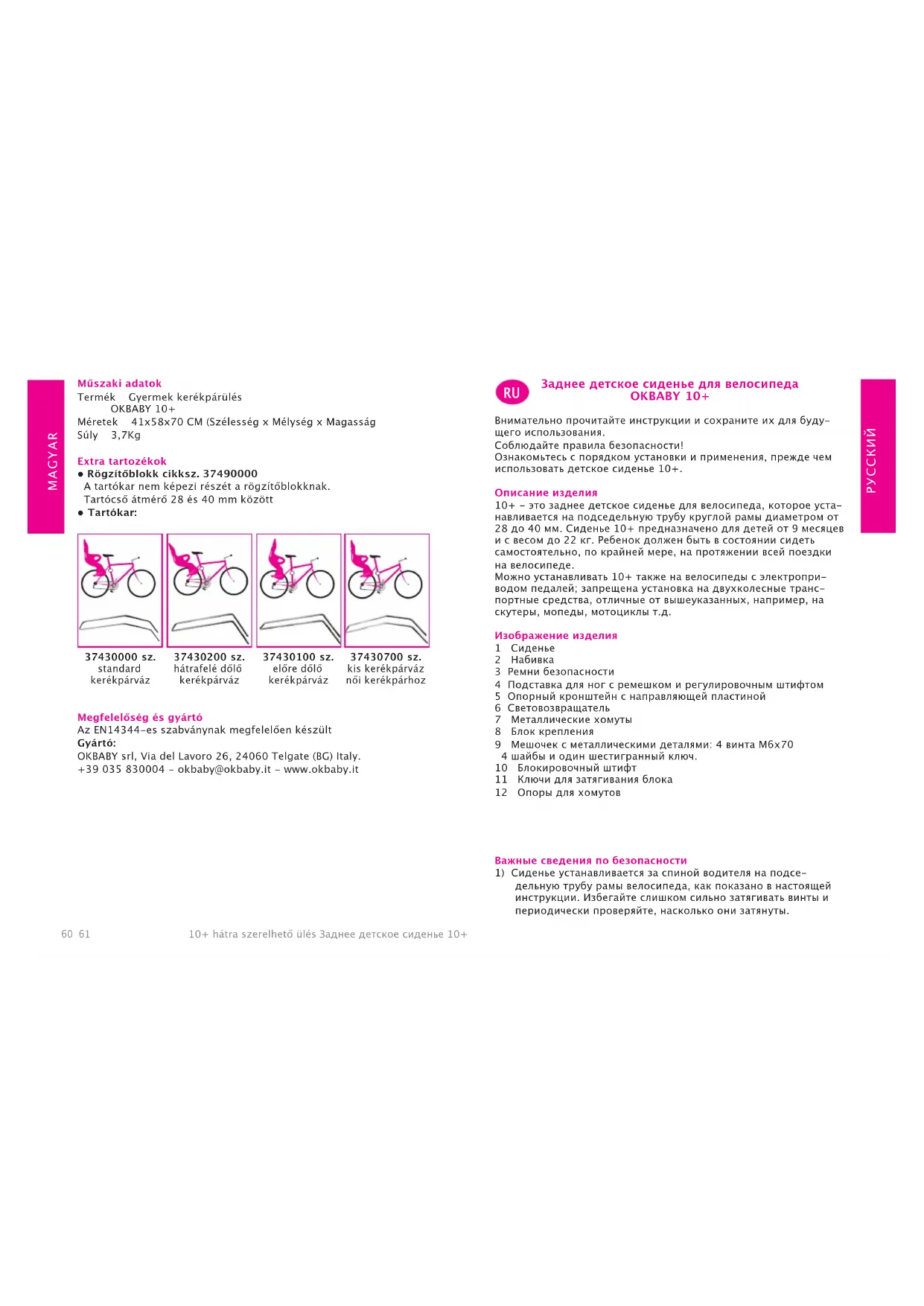 10+ - детское велосипедное сиденье OKBABY - Бесплатное руководство пользователя
