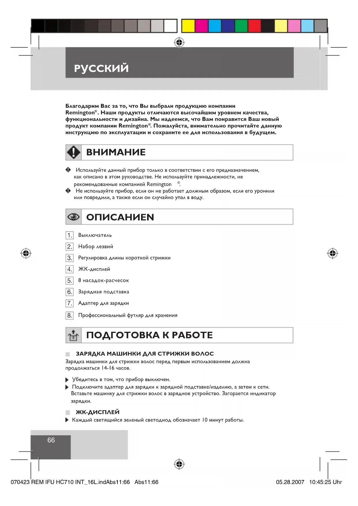 РУКОВОДСТВО ПОЛЬЗОВАТЕЛЯ HC710 REMINGTON