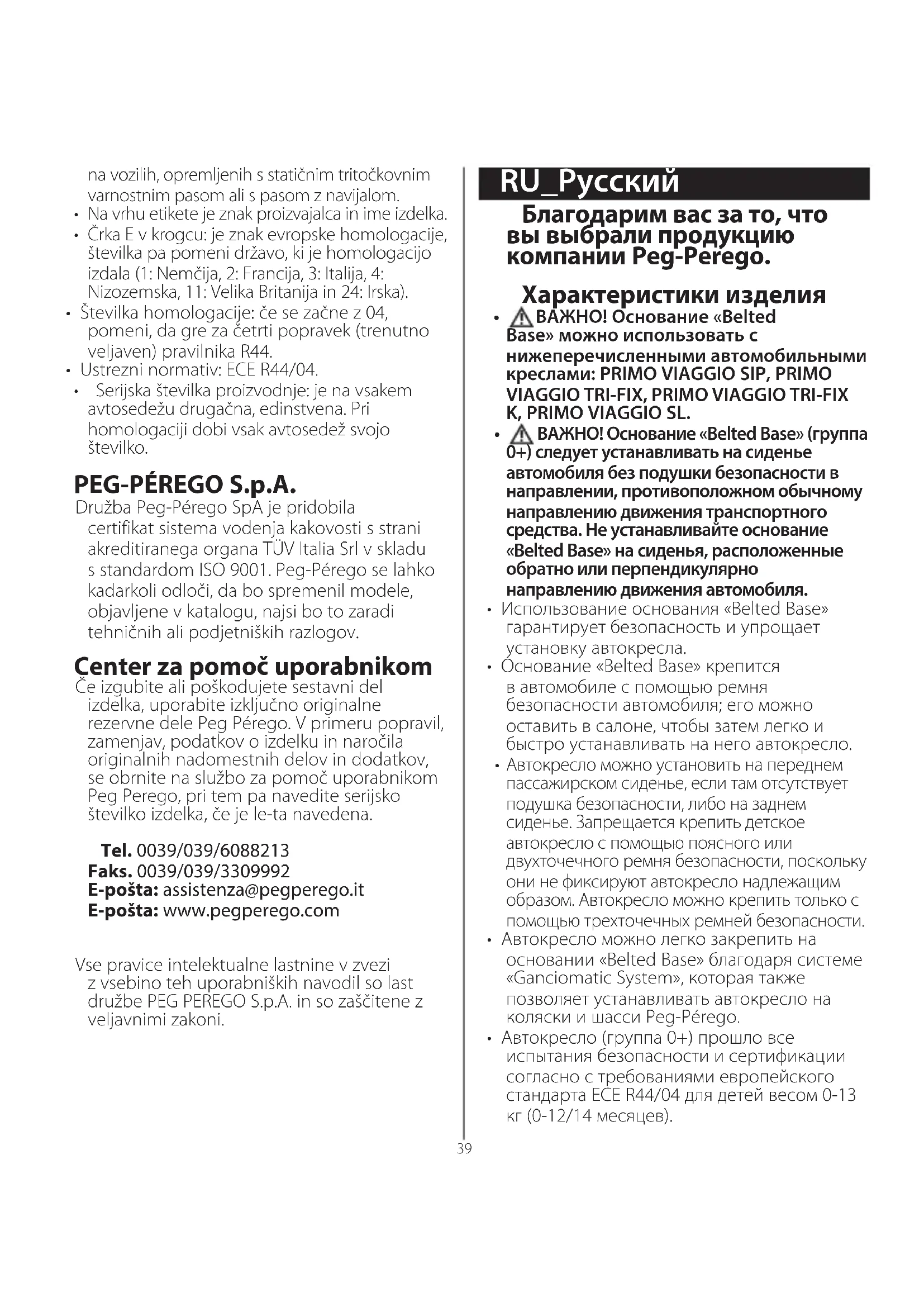 РУКОВОДСТВО ПОЛЬЗОВАТЕЛЯ Belted Base PEG PEREGO