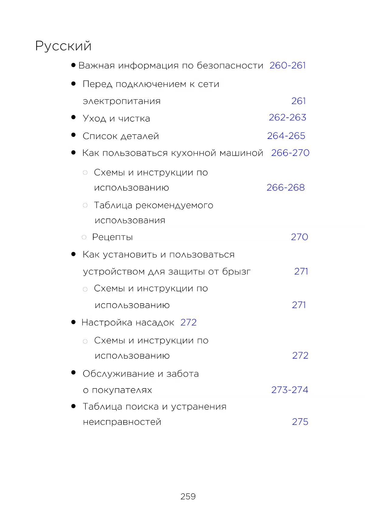 Таблица поиска и устранения неисправностей 275 262-263 264-265260 Важная информация по безопасности