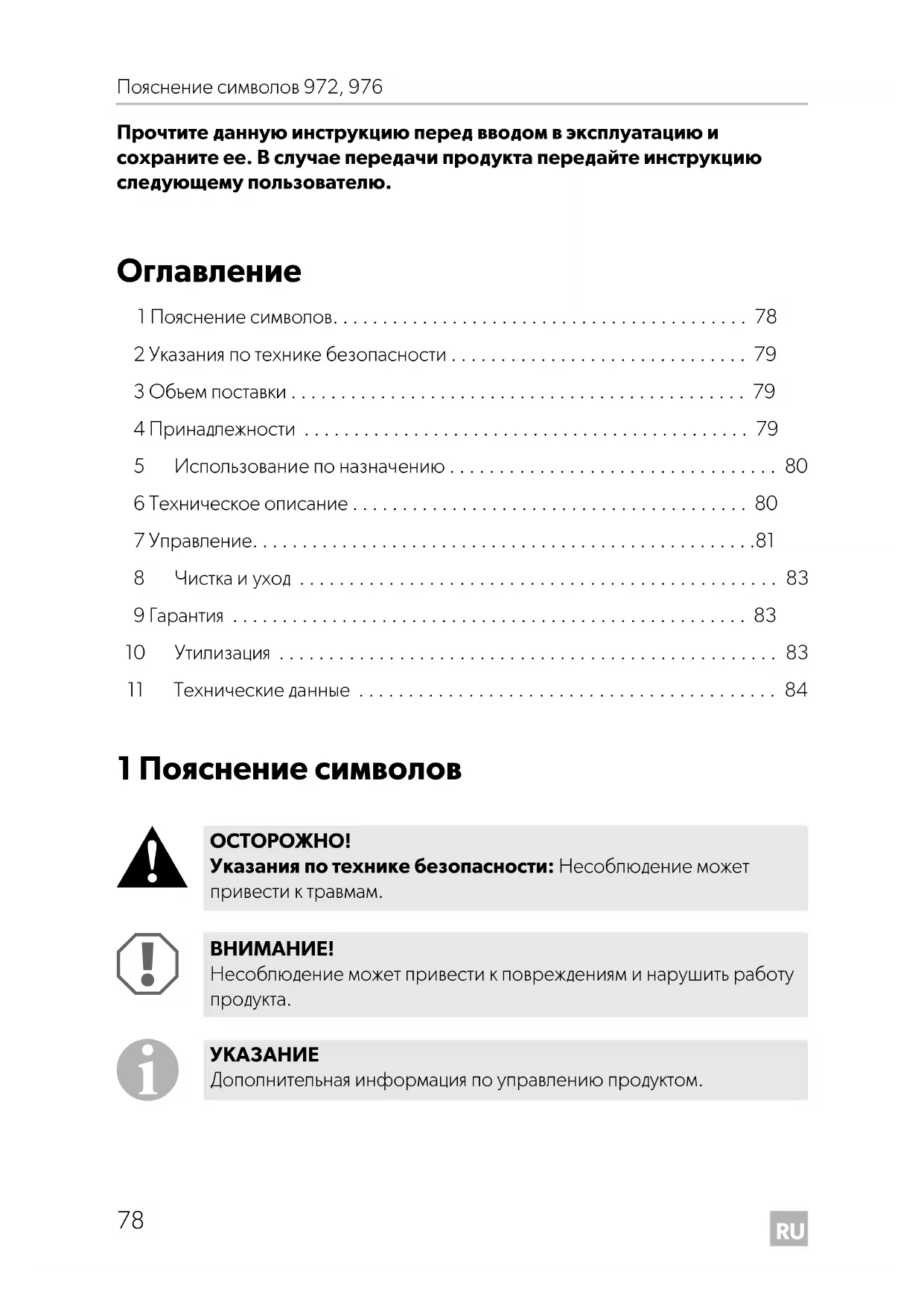 Дополнительная информация по управлению продуктом. 970-Toilets-O-18s.book Seite 78 Montag, 27. Februar 2017 6:20 18RU 972, 976 Указания по технике безопасности