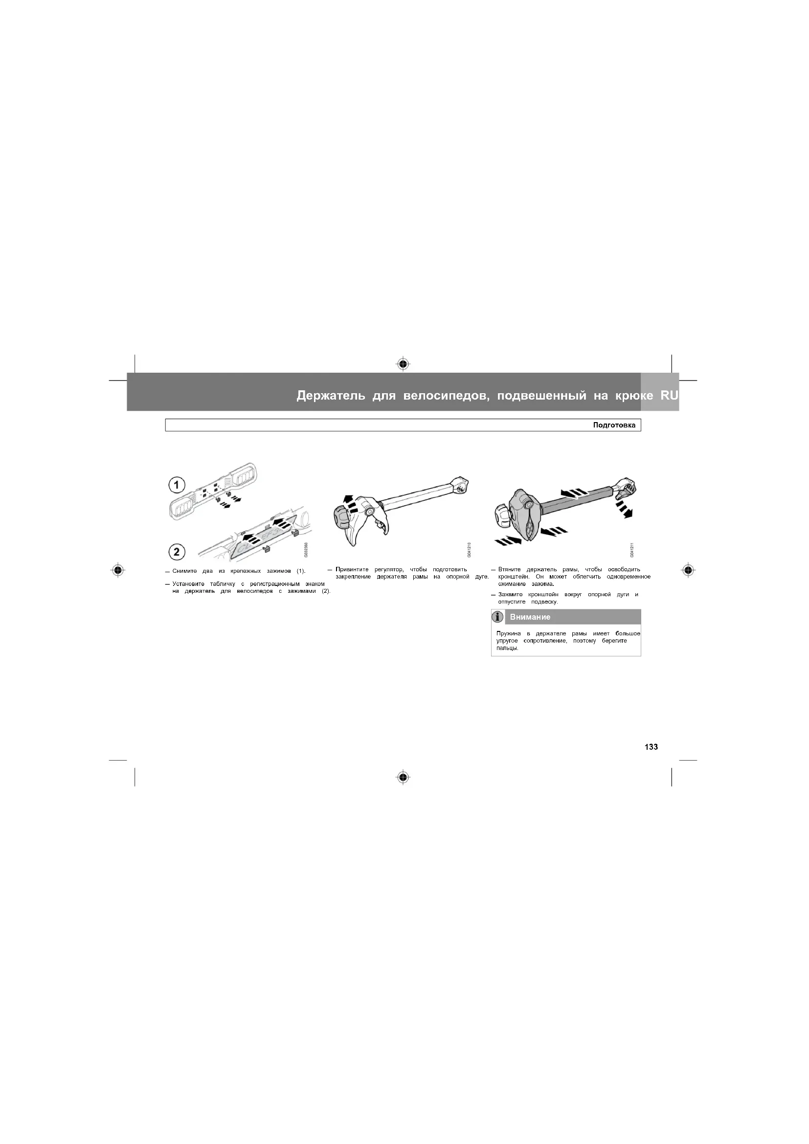 Установите хомут на внешней стороне, чтобы избыточная длина не заслоняла табличку с регистрационным знаком. Держатель для велосипедов, подвешенный на крюке RU Держатель для дополнительного велосипеда