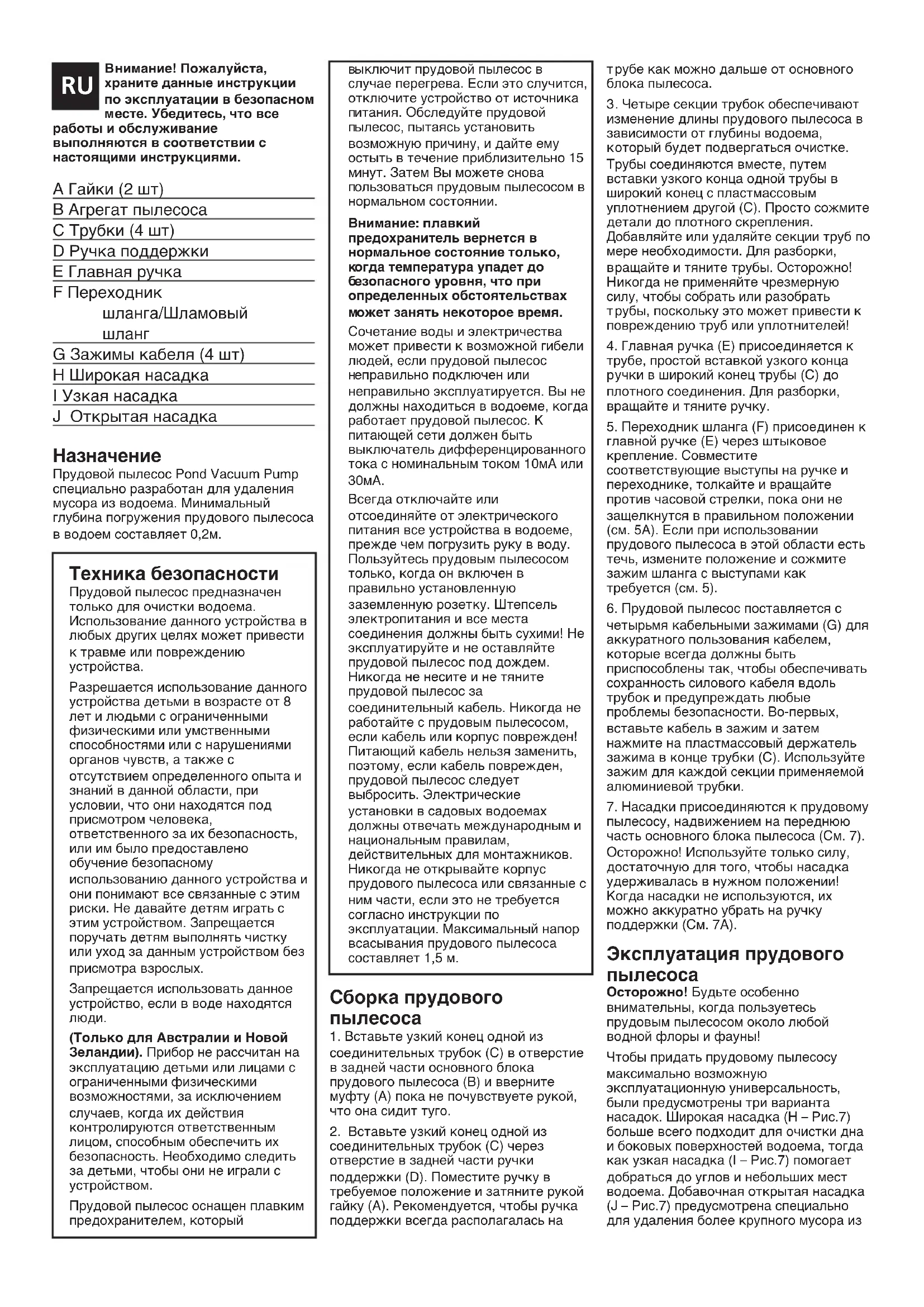 РУКОВОДСТВО ПОЛЬЗОВАТЕЛЯ PondVac 1752 HOZELOCK