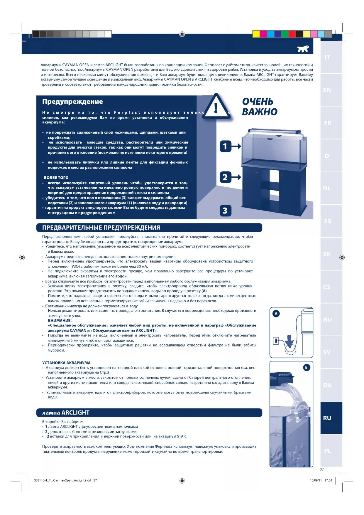 Перед выполнением любой установки, пожалуйста, внимательно прочитайте следующие рекомендации, чтобы гарантировать Вашу безопасность и предотвратить повреждение аквариума.