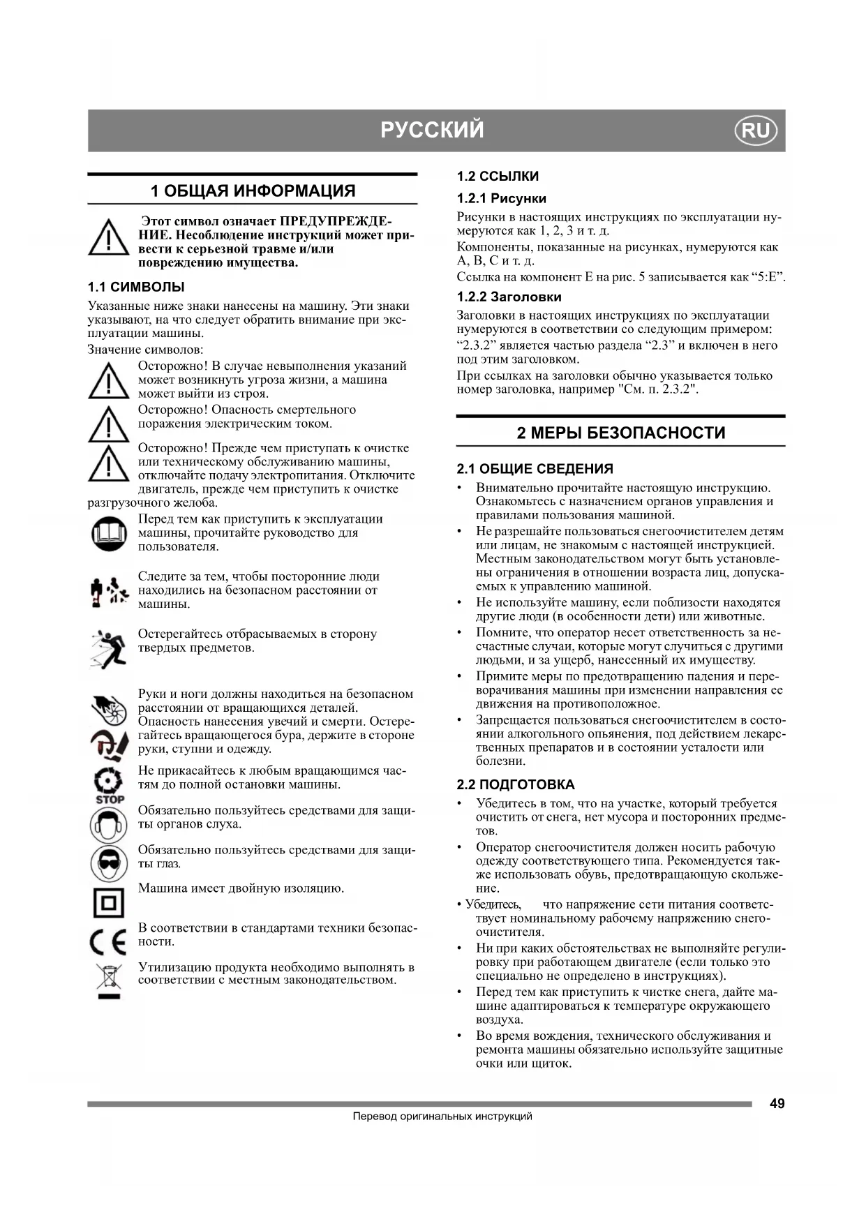 Перевод оригинальных инструкций 1 ОБЩАЯ ИНФОРМАЦИЯ Этот символ означает ПРЕДУПРЕЖДЕ- НИЕ. Несоблюдение инструкций может при- вести к серьезной травме и/или повреждению имущества.