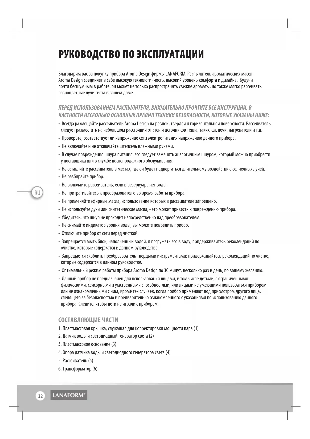 РУКОВОДСТВО ПОЛЬЗОВАТЕЛЯ Aroma Design LANAFORM