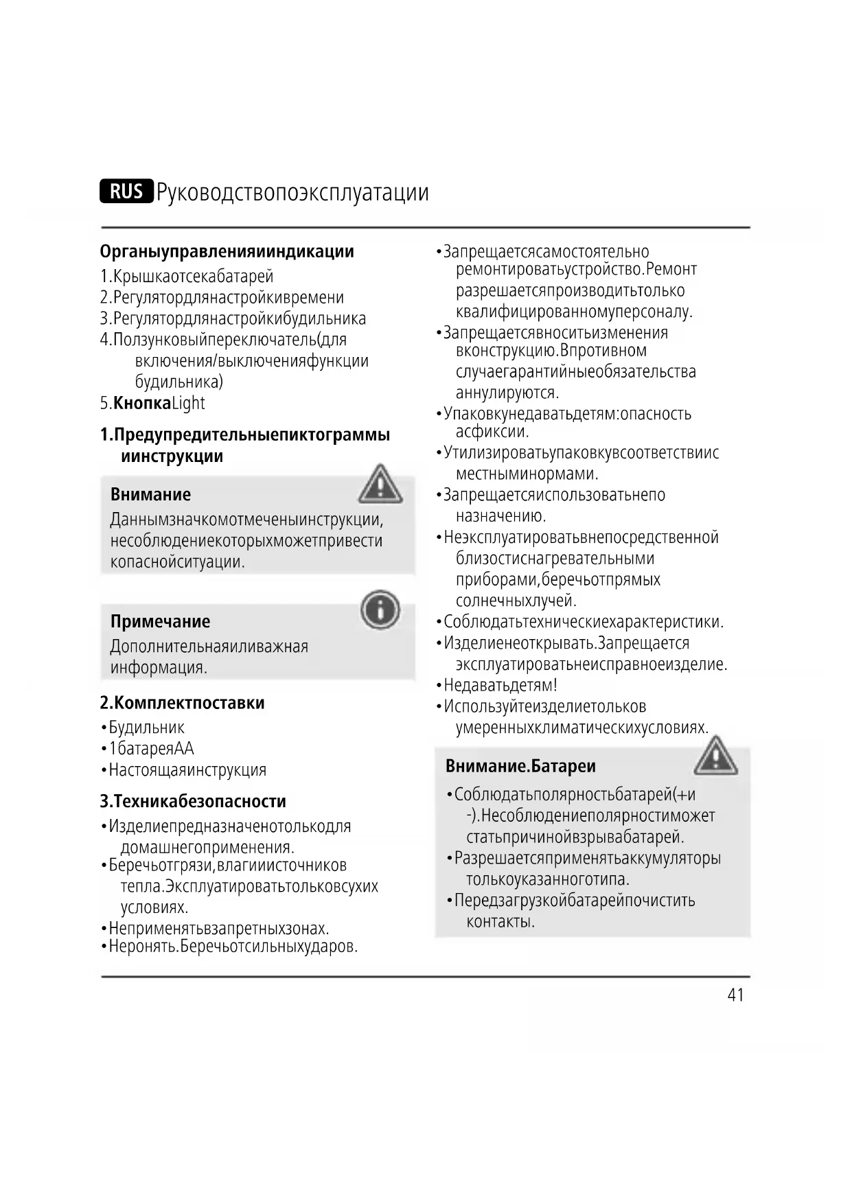 - Израсходованные батареи немедленно удалять из прибора и утилизировать.