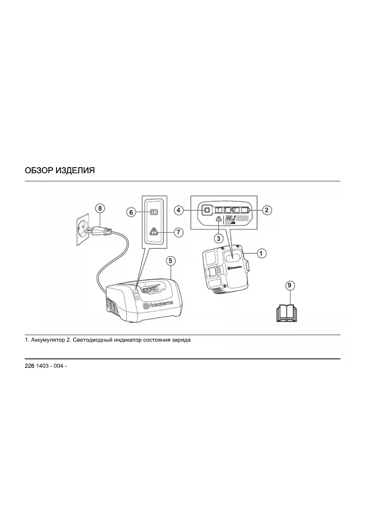 1. Аккумулятор 2. Светодиодный индикатор состояния заряда