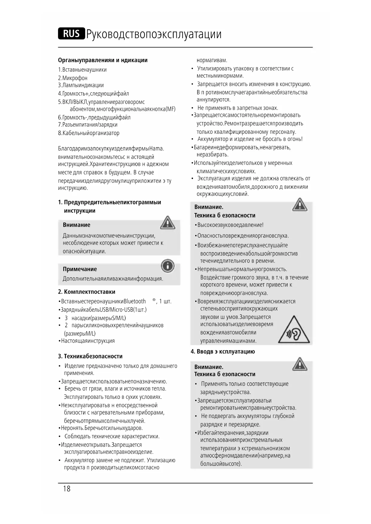 - Во время эксплуатации изделия снижается степень восприятия окружающих звуков ишумов. Запрещается использовать изделие во время вождения автомобиля и управления машинами.