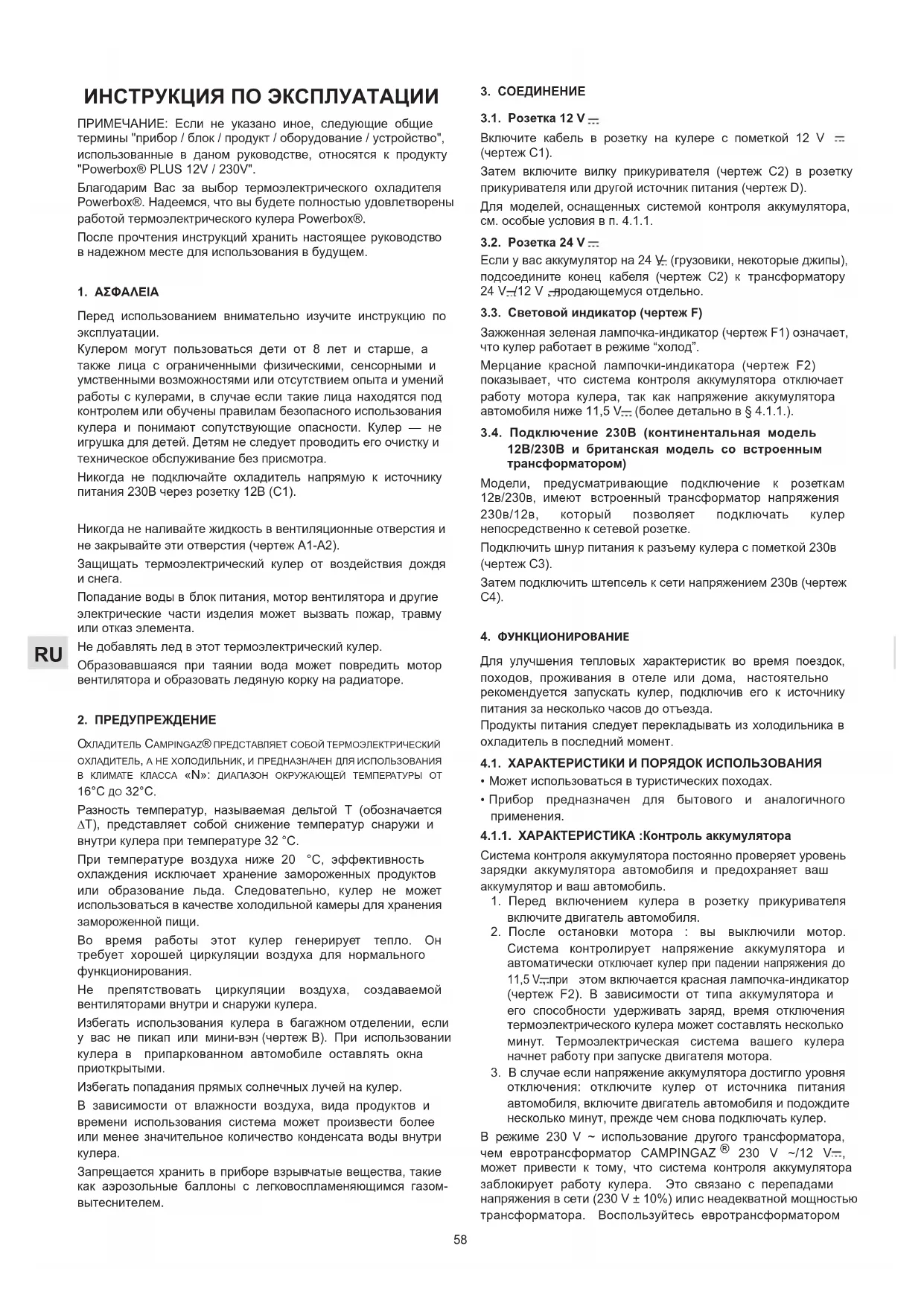 РУКОВОДСТВО ПОЛЬЗОВАТЕЛЯ PowerBox Plus 28L 12V230V CAMPINGAZ