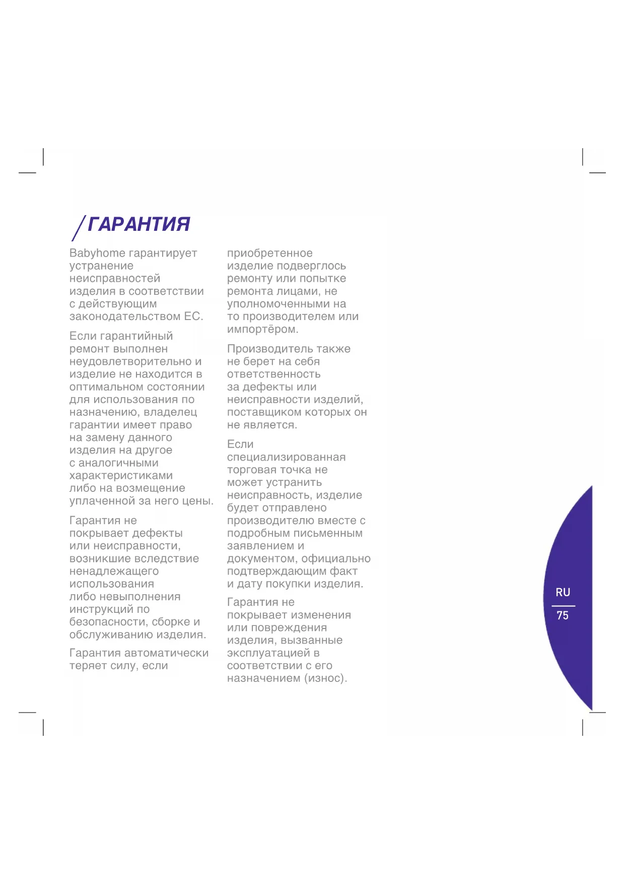 KR75 Babyhome гарантирует