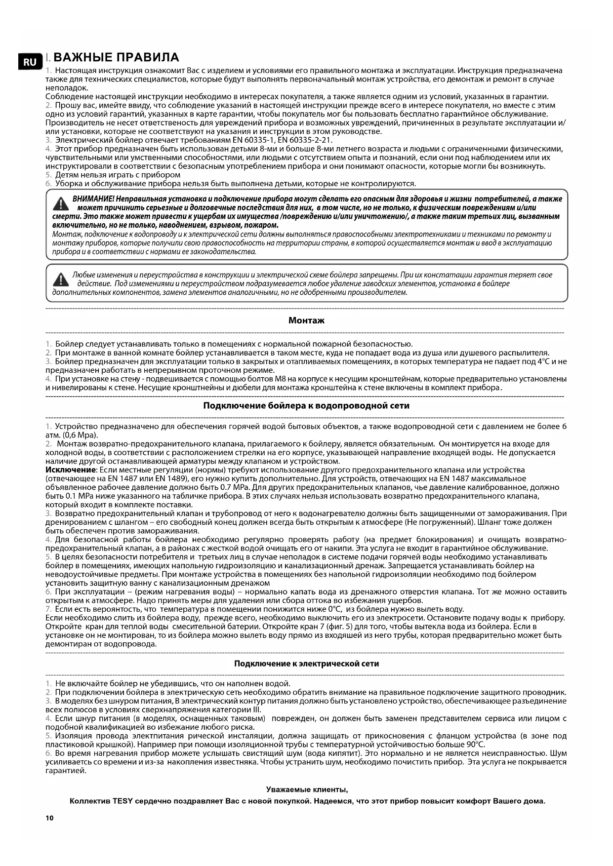 Уважаемые клиенты, Коллектив TESY сердечно поздравляет Вас с новой покупкой. Надеемся, что этот прибор повысит комфорт Вашего дома.11Русский