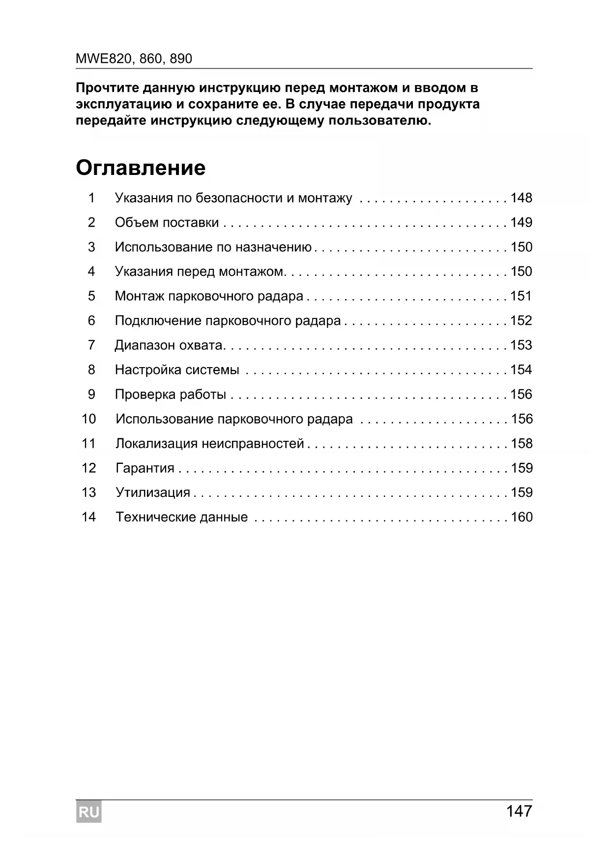 Система более не работает надежно, если неисправен один или несколько датчиков.RU MWE820, 860, 890 Гарантия