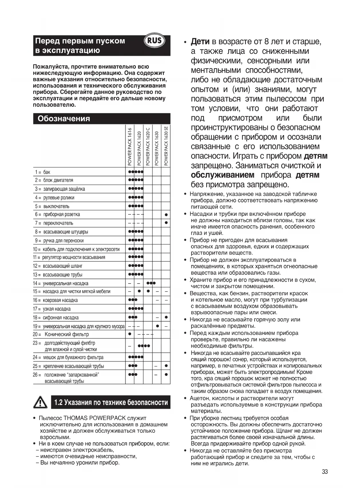 РУКОВОДСТВО ПОЛЬЗОВАТЕЛЯ Power Pack 1630 THOMAS