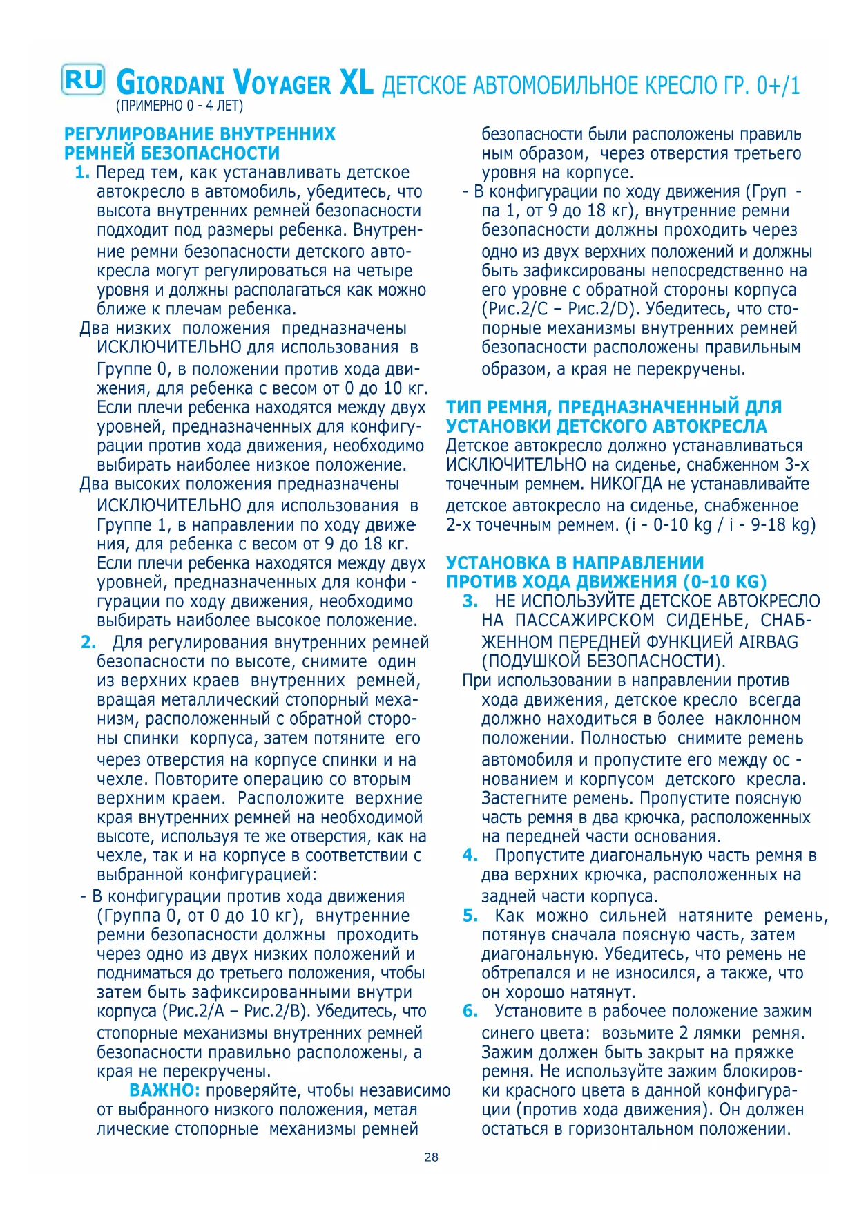 Скачайте инструкцию для вашего автокресло в формате PDF бесплатно! Найдите своё руководство Voyager XL - Giordani и возьмите своё электронное устройство обратно в руки. На этой странице опубликованы все документы, необходимые для использования вашего устройства. Voyager XL бренда Giordani.