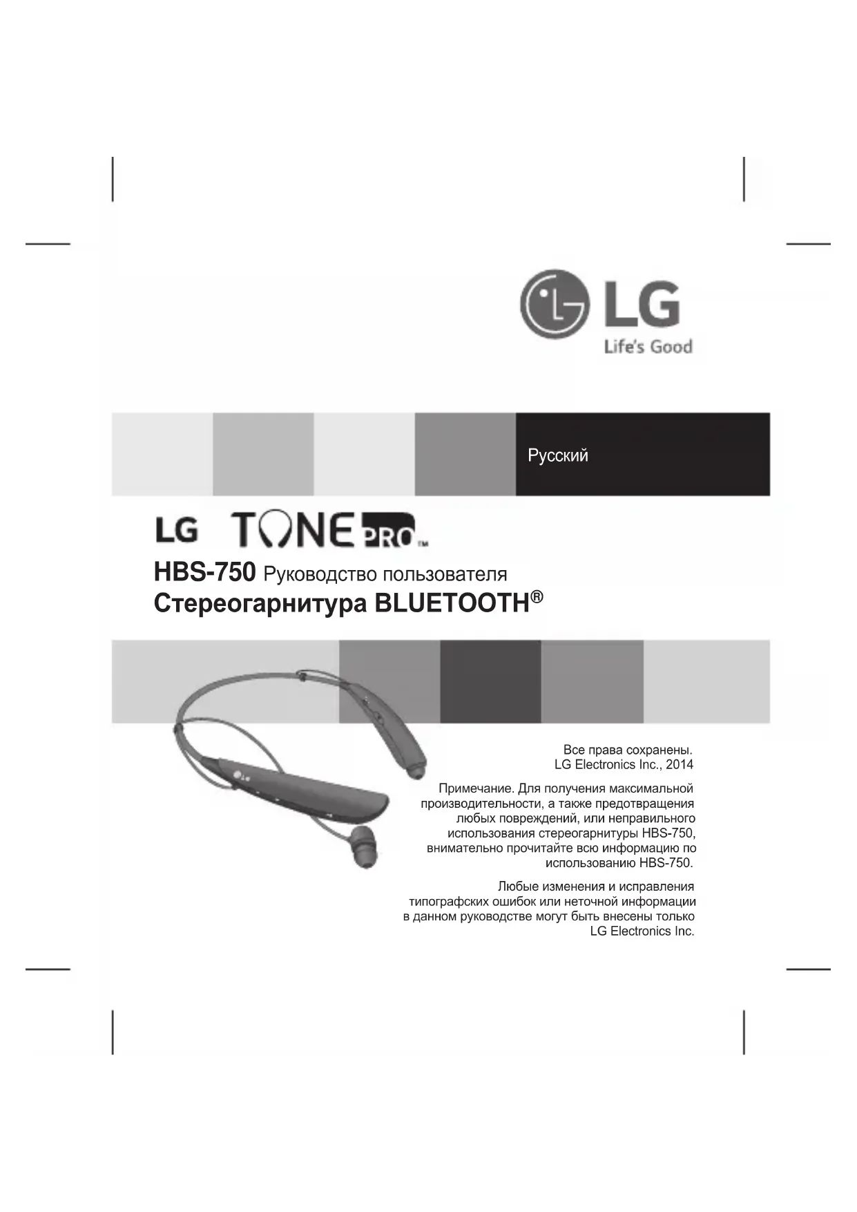 РУКОВОДСТВО ПОЛЬЗОВАТЕЛЯ Tone Pro HBS750 LG