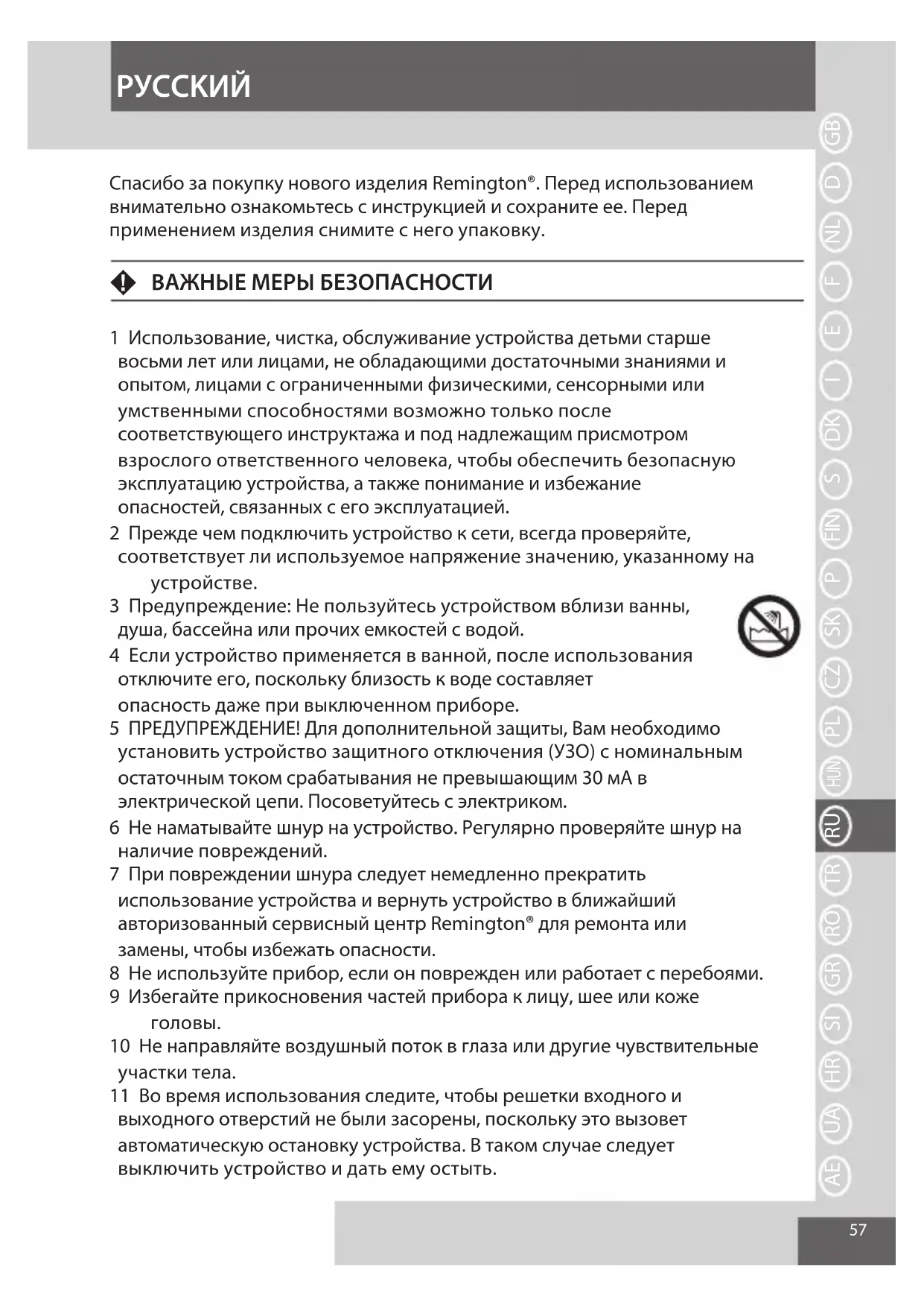 Спасибо за покупку нового изделия Remington®. Перед использованием внимательно ознакомьтесь с инструкцией и сохраните ее. Перед применением изделия снимите с него упаковку.