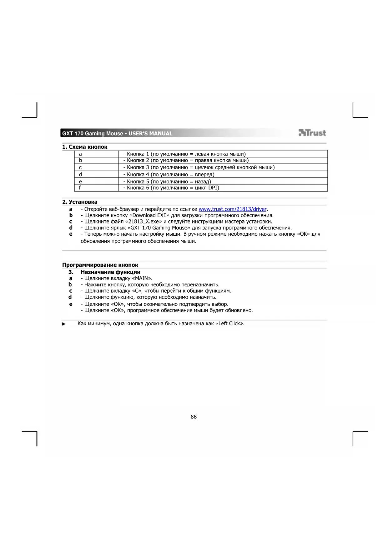 Heron GXT 170 - мышь TRUST - Бесплатное руководство пользователя