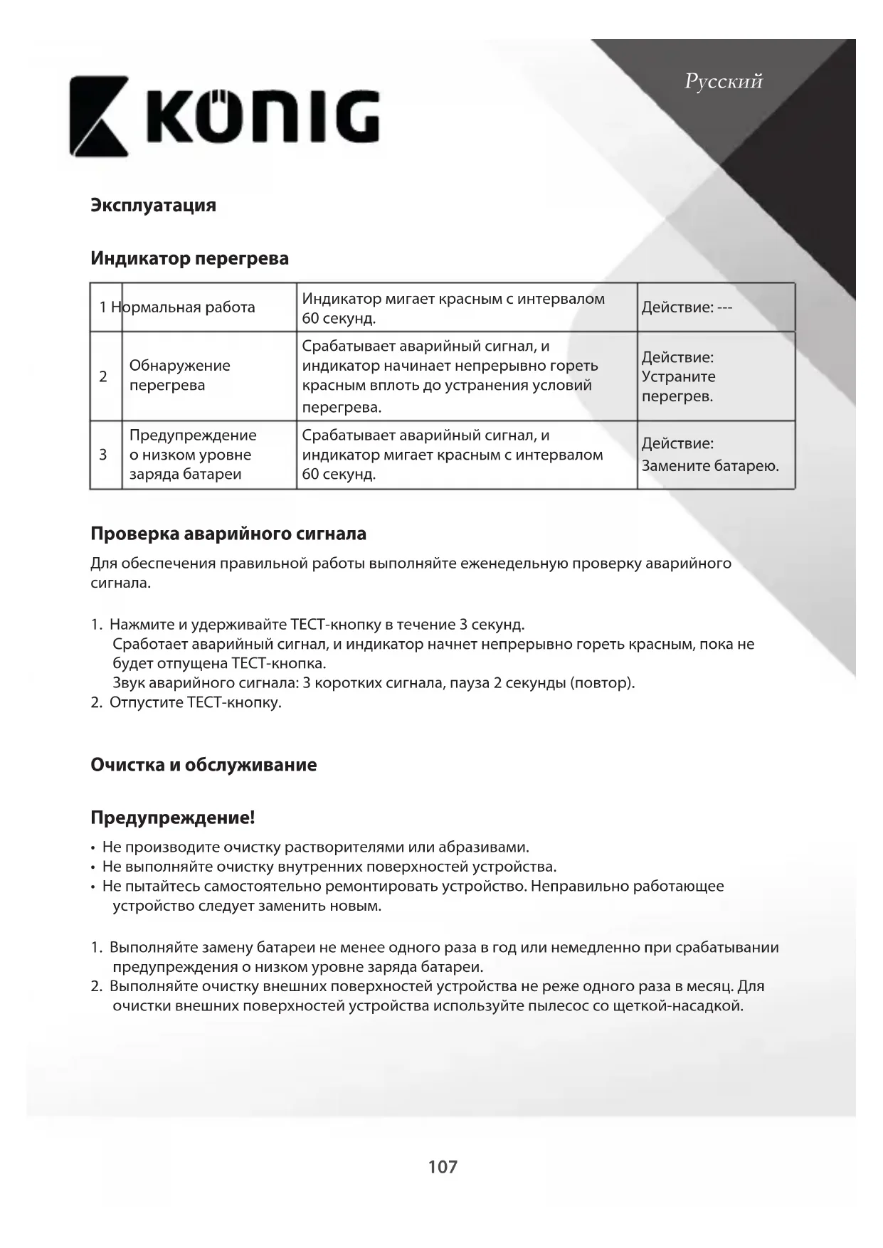 Скачайте инструкцию для вашего Détecteur de fumée / alarme incendie в формате PDF бесплатно! Найдите своё руководство SASHA100 - KONIG и возьмите своё электронное устройство обратно в руки. На этой странице опубликованы все документы, необходимые для использования вашего устройства. SASHA100 бренда KONIG.