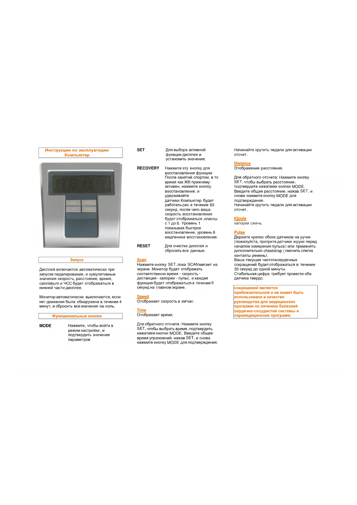 | Обслуживание | Регулярно проверяйте винты и болты, очищайте раму и консоль мягкой тканью. |