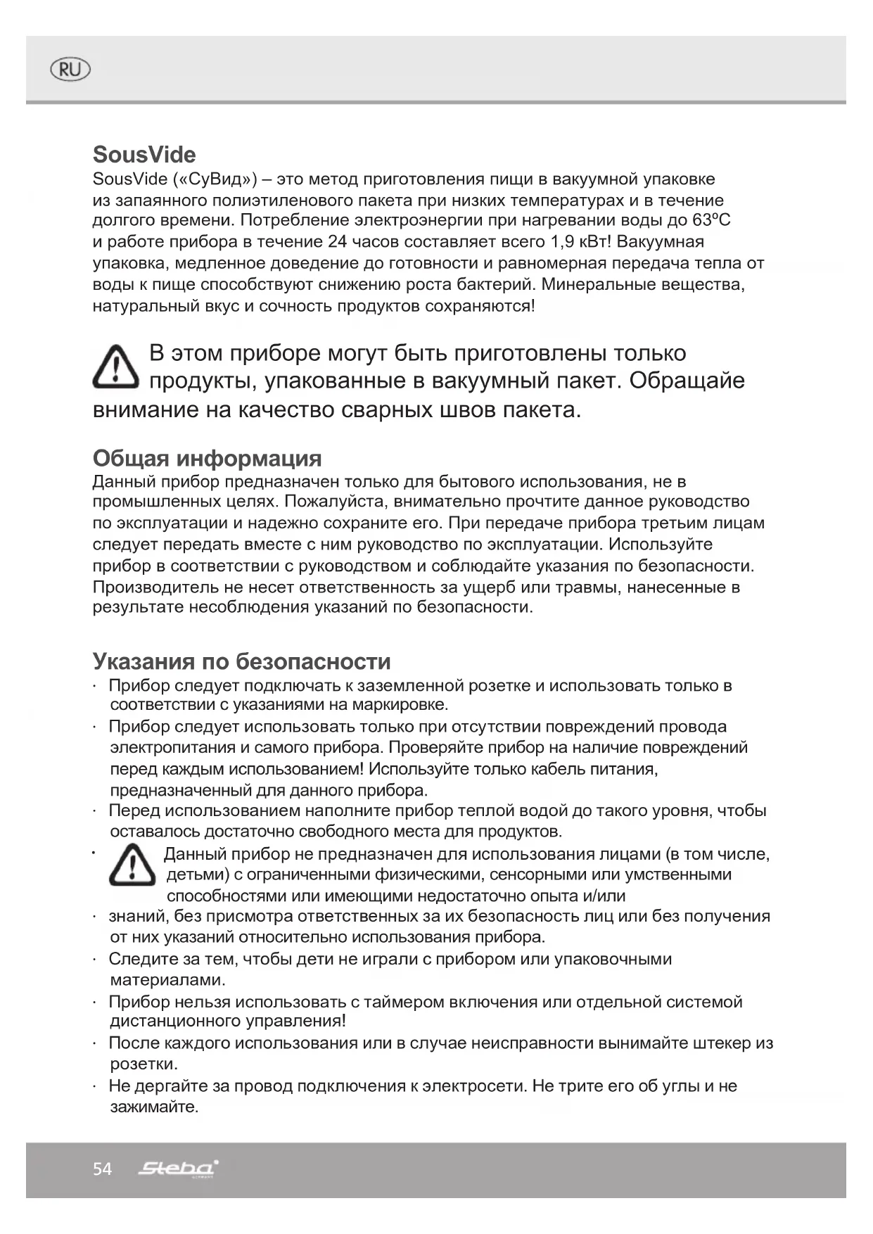 Скачайте инструкцию для вашего мультиварка в формате PDF бесплатно! Найдите своё руководство SV 200 PRO - STEBA и возьмите своё электронное устройство обратно в руки. На этой странице опубликованы все документы, необходимые для использования вашего устройства. SV 200 PRO бренда STEBA.