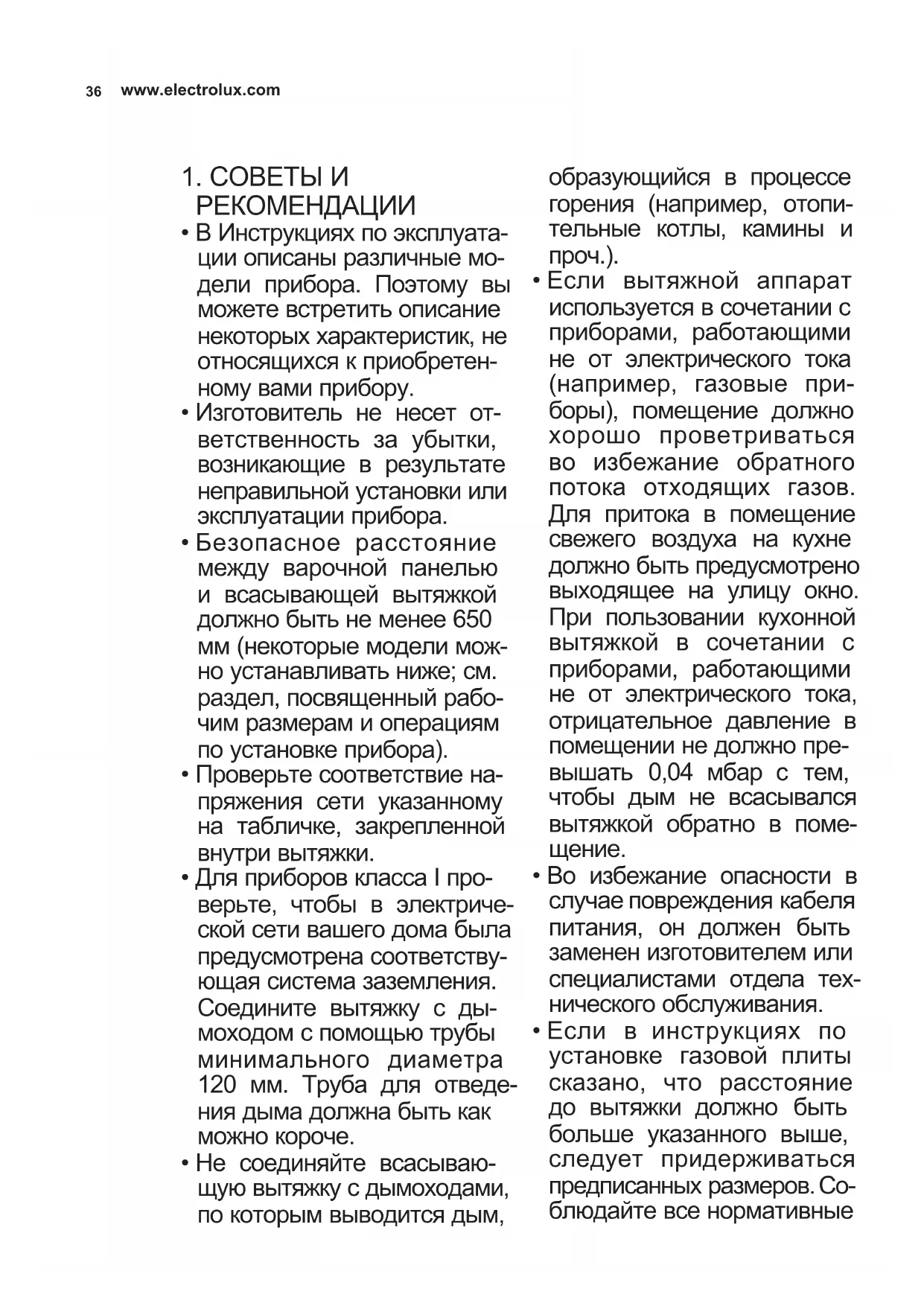 - Если вытяжной аппарат используется в сочетании с приборами, работающими не от электрического тока (например, газовые при- боры), помещение должно хорошо проветриваться во избежание обратного потока отходящих газов. Для притока в помещение свежего воздуха на кухне должно быть предусмотрено выходящее на улицу окно. При пользовании кухонной вытяжкой в сочетании с приборами, работающими не от электрического тока, отрицательное давление в помещении не должно пре- вышать 0,04 мбар с тем, чтобы дым не всасывался вытяжкой обратно в поме-
