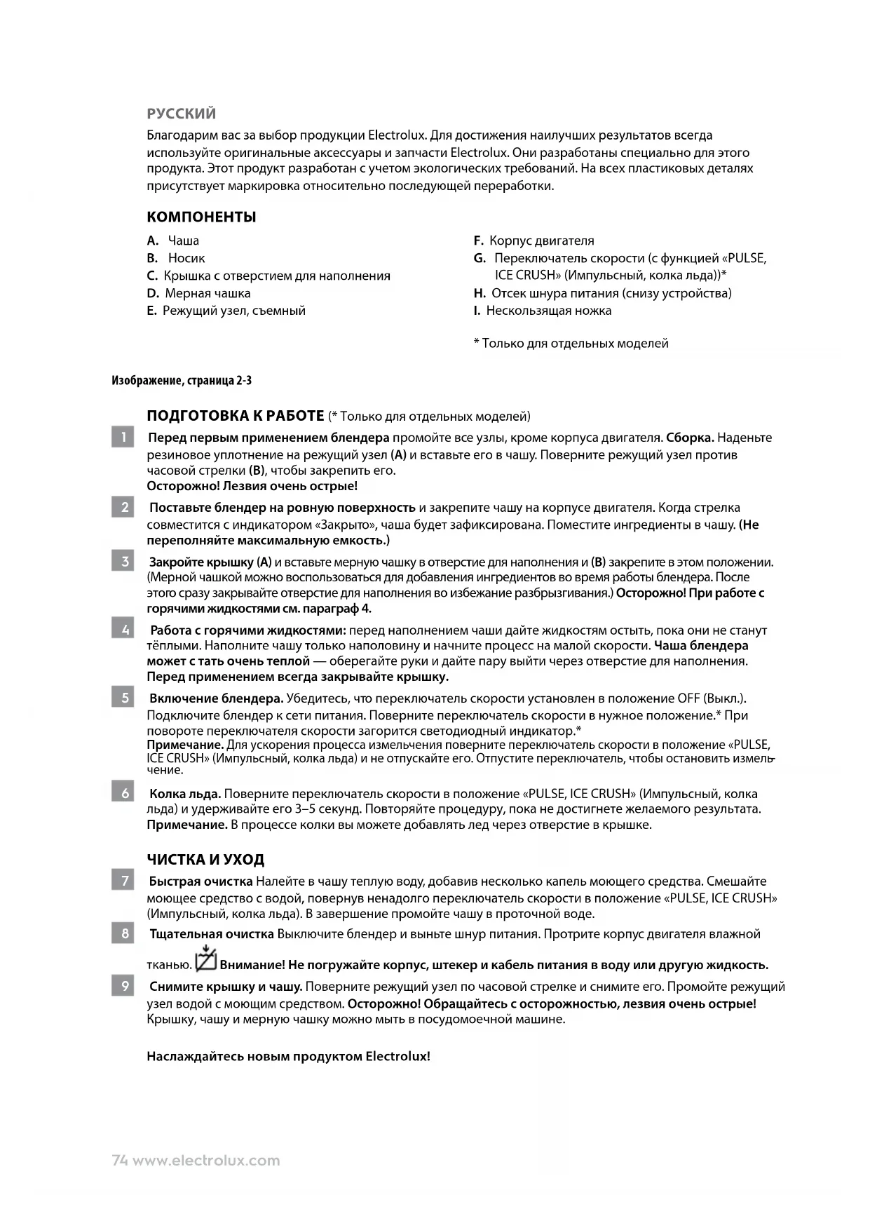 ESB5830 - Блендер ELECTROLUX - Бесплатное руководство пользователя