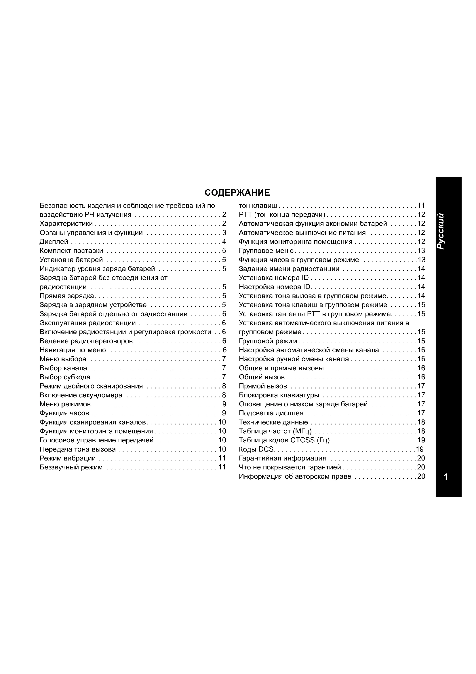 - Зарядка батарей отдельно от радиостанции p. 6